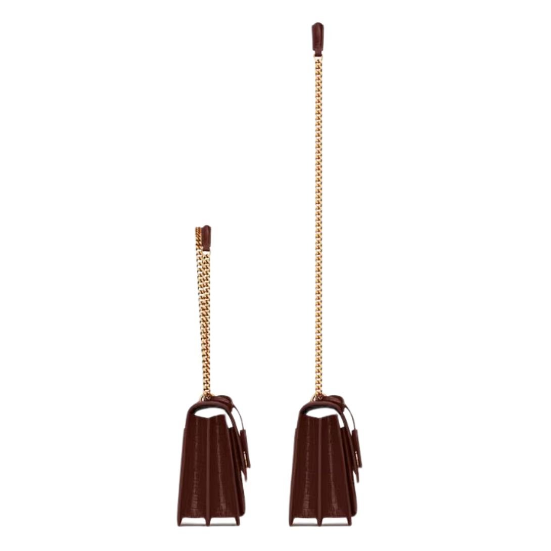 A sliding chain strap allows the bag to transition seamlessly between shoulder and crossbody wear, adapting to various occasions and styles.