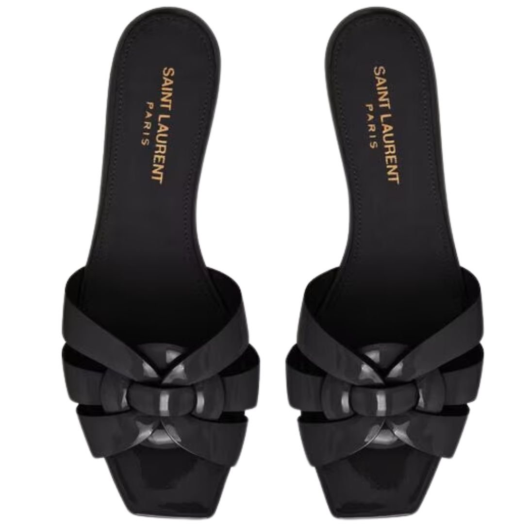 SAINT LAURENT TRIBUTE MULES IN PATENT LEATHER
