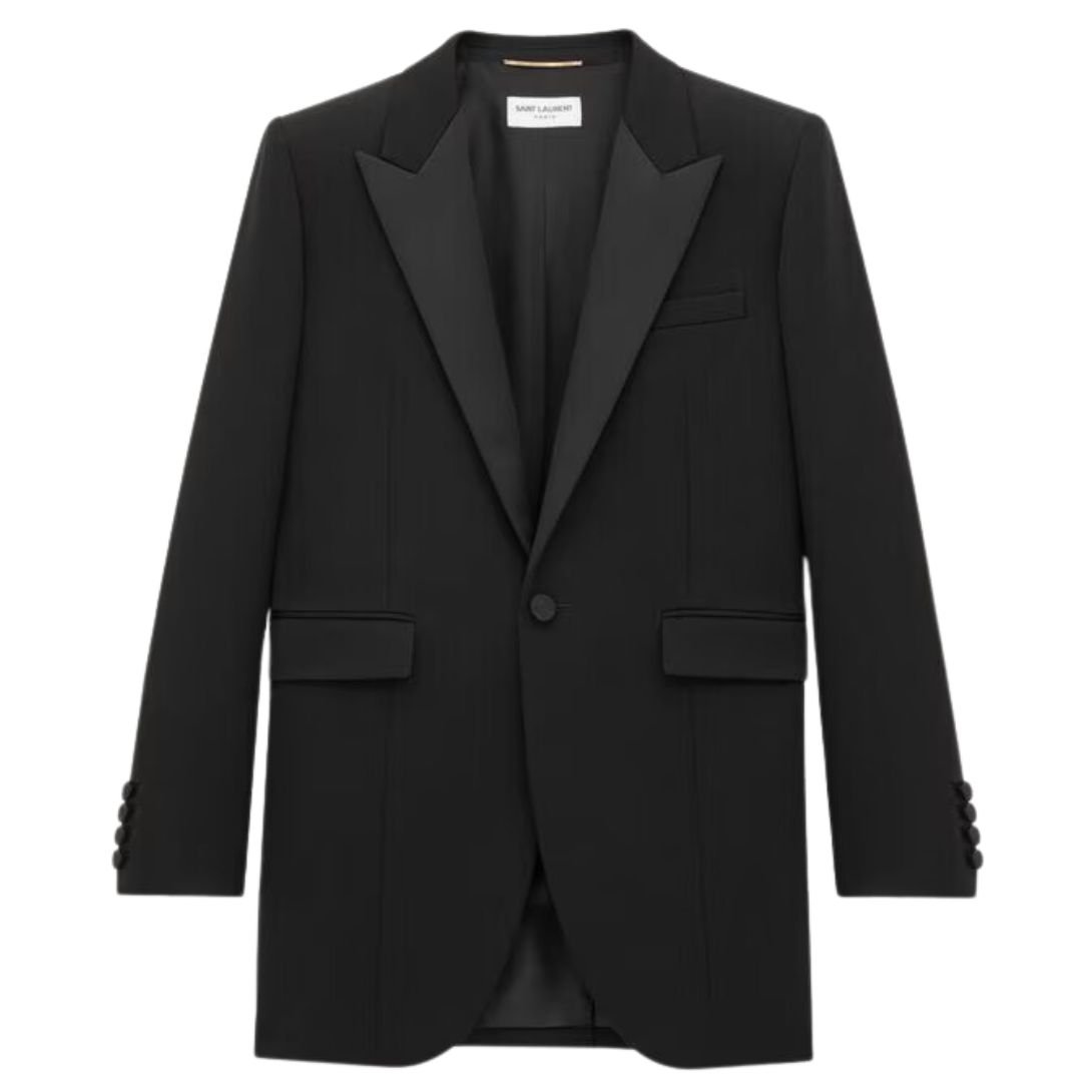 SAINT LAURENT TUXEDO JACKET IN GRAIN DE POUDRE