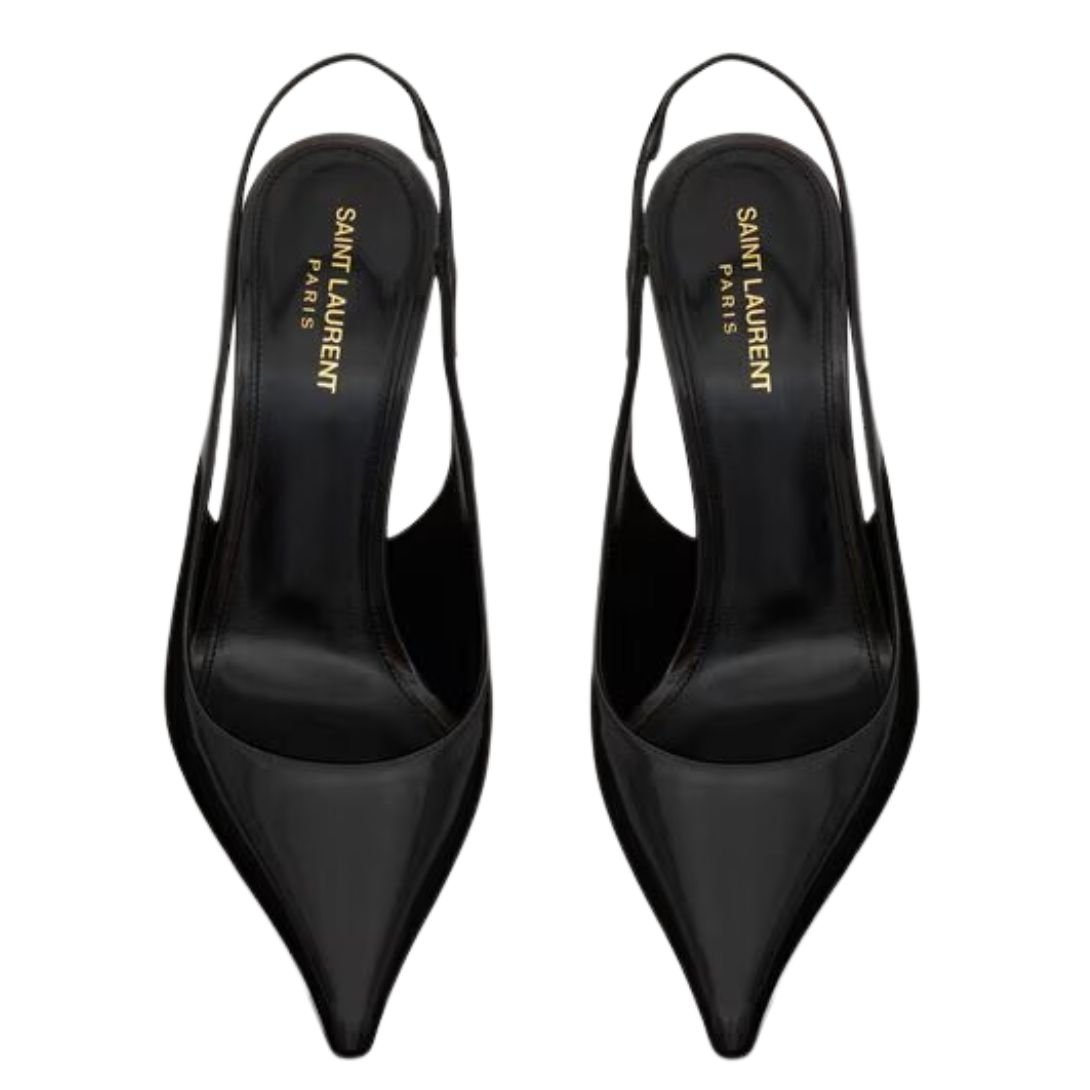 SAINT LAURENT VENDOME SLINGBACK PUMPS IN GLAZED LEATHER