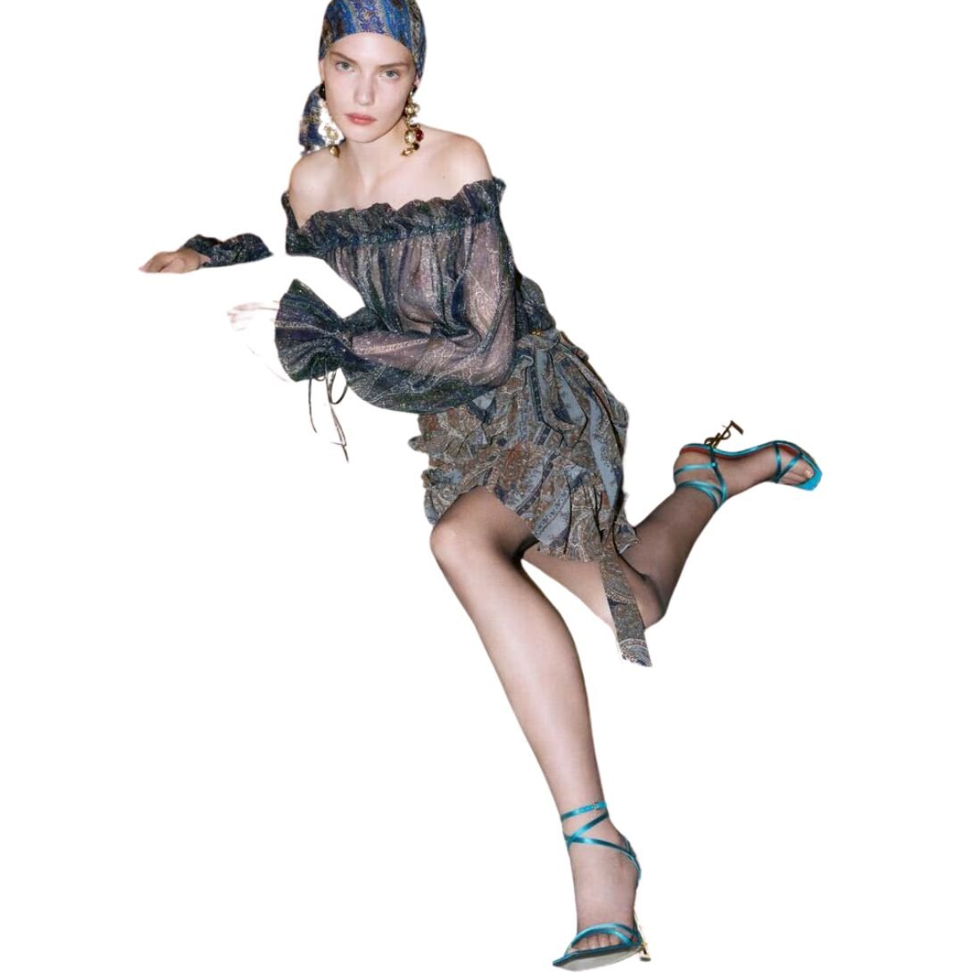 SAINT LAURENT WRAP SKIRT IN PAISLEY SILK GEORGETTE