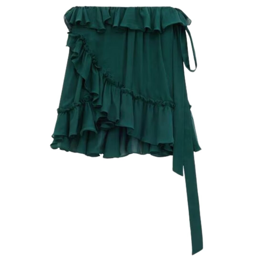 Made in Italy, this semi-sheer wrap mini skirt offers a blend of classic elegance and modern style, making it an essential addition to your wardrobe for refined, casual, or evening looks.
