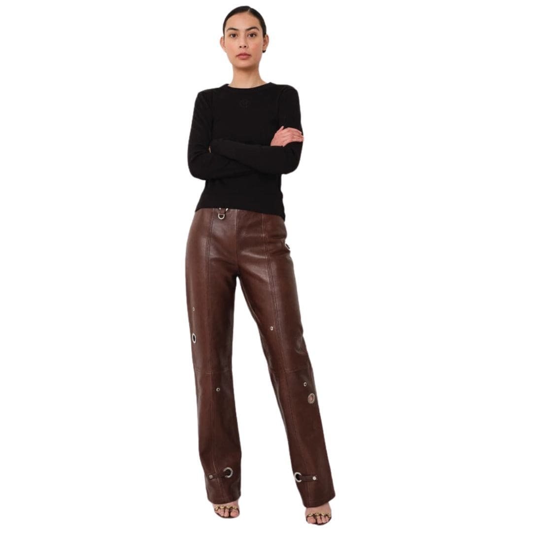 In summary, the SAKS POTTS Bonnie Pants in Chestnut are a perfect blend of classic tailoring and contemporary design, making them a valuable addition to any wardrobe. Their luxurious fabric, flattering cut, and rich color ensure they will become a go-to piece for a variety of occasions.