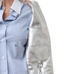 The Daria Jacket is not only visually striking but also versatile in its styling options. It can be paired with everything from casual denim and sneakers for a chic streetwear look to tailored trousers and heels for a more polished ensemble. Whether you’re stepping out for a casual day out or dressing up for a night on the town, the Saks Potts Daria Jacket in Silver is sure to make a statement and elevate your wardrobe with its unique and contemporary flair. SAKS POTTS DARIA JACKET SILVER