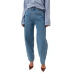 The Helle Jeans feature a flattering high-rise waistband that cinches the waist, creating a sleek silhouette that accentuates natural curves. This high-rise fit is not only stylish but also practical, offering additional support and comfort throughout the day. The jeans are tailored with a slim, straight-leg cut that elongates the legs and offers a modern, streamlined look. The slight stretch in the fabric ensures a snug fit while allowing for ease of movement, making them ideal for everyday wear.