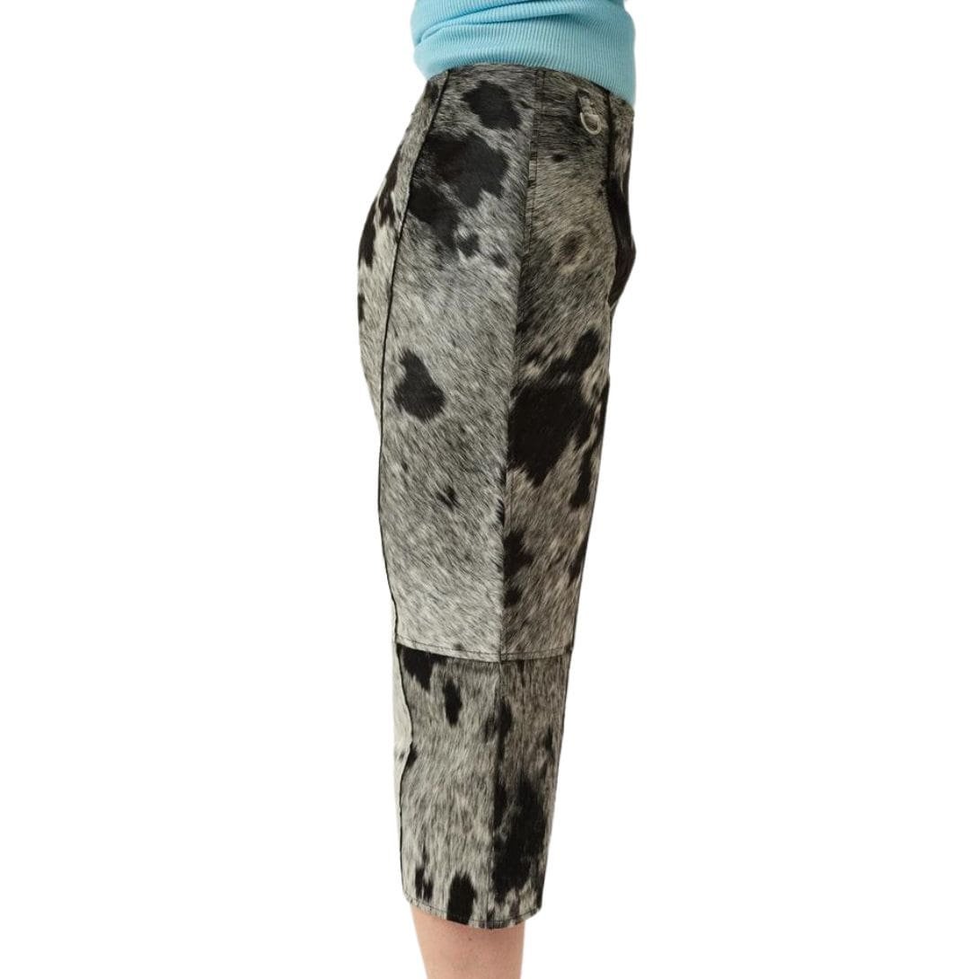 Crafted from premium materials, the Lua Pants feature a rich brown and white cow print that evokes a sense of rustic elegance with a modern edge. The print is strategically placed to enhance the overall design, creating a visually striking contrast that stands out in any setting. The color palette is both versatile and eye-catching, allowing these pants to be paired effortlessly with a variety of tops and accessories.