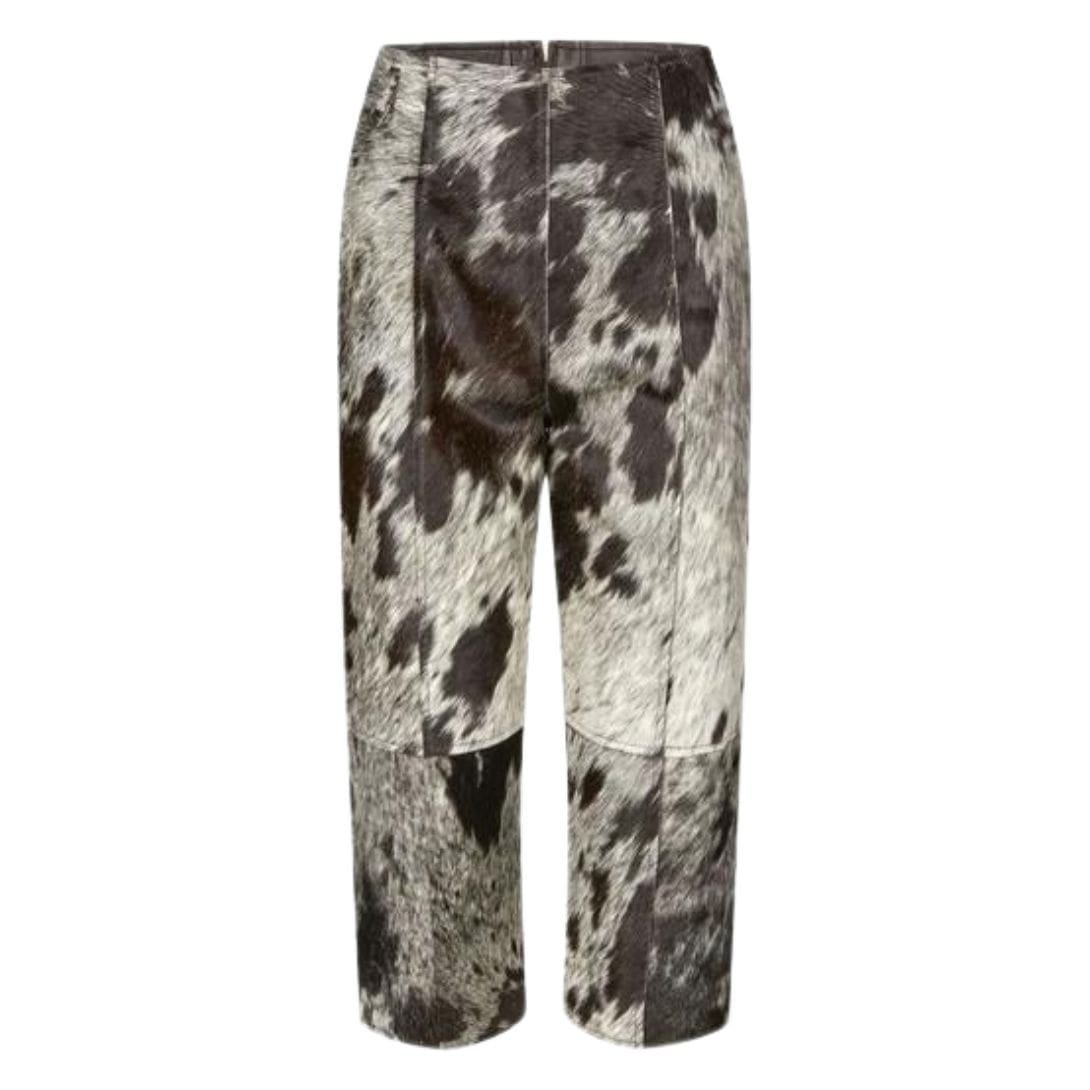 Whether styled with a crisp white blouse for a professional setting or a casual tee for a laid-back day out, the Saks Potts Lua Pants in Brown and White Cow print are a versatile and fashionable choice that makes a memorable impression.