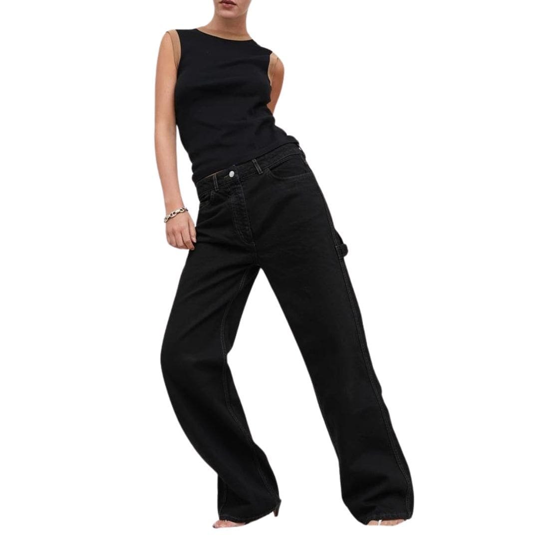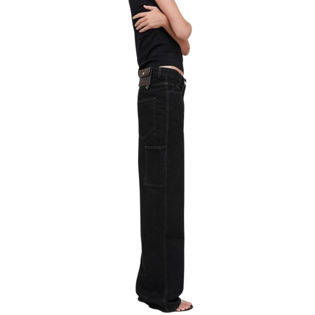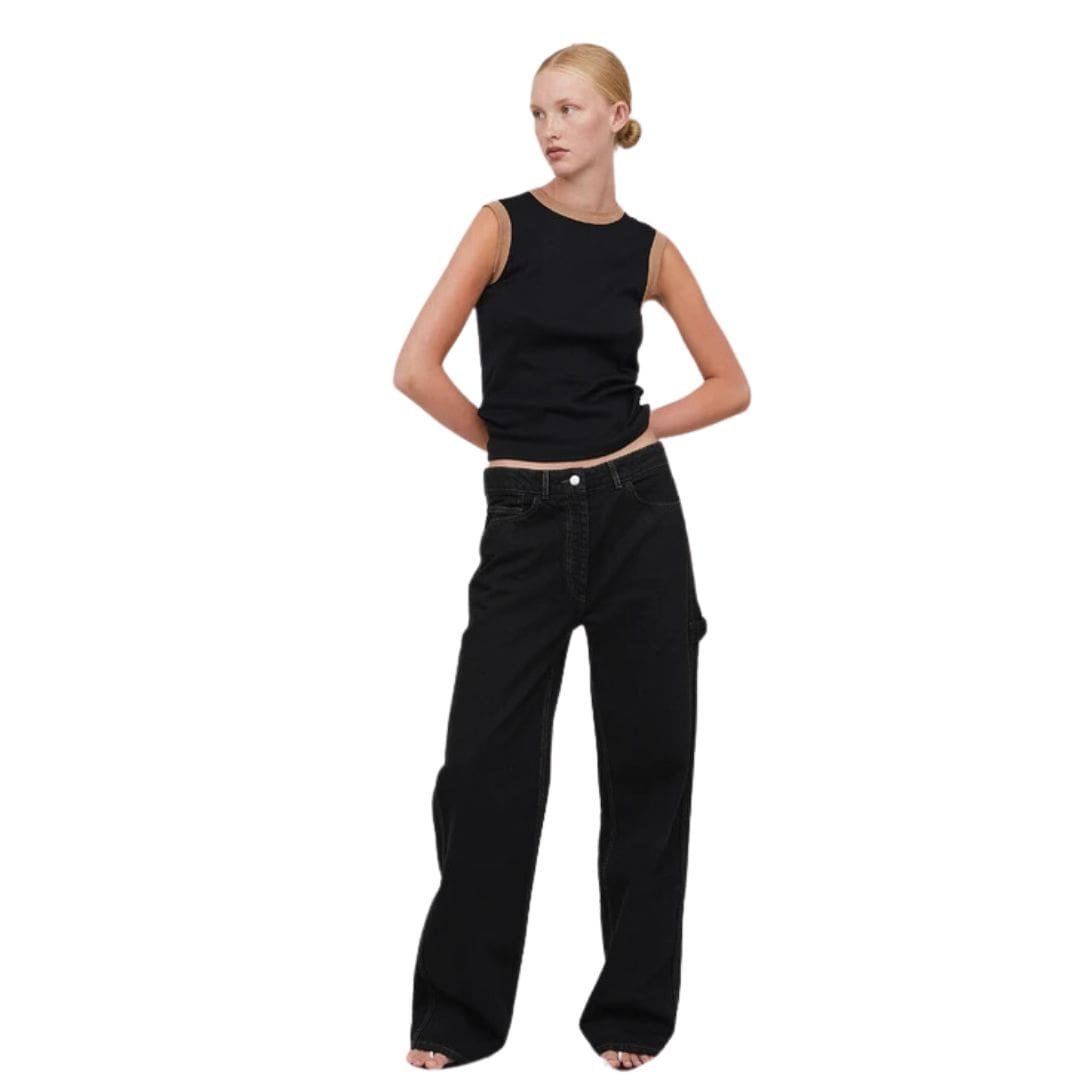 Detailed with a classic five-pocket styling, the Salma Jeans include functional pockets that add practicality while maintaining a streamlined appearance. The front pockets are designed with a slight slant, adding a subtle touch of modernity to the traditional design. The back pockets are minimalistic, enhancing the sleekness of the silhouette. SAKS POTTS SALMA JEANS BLACK
