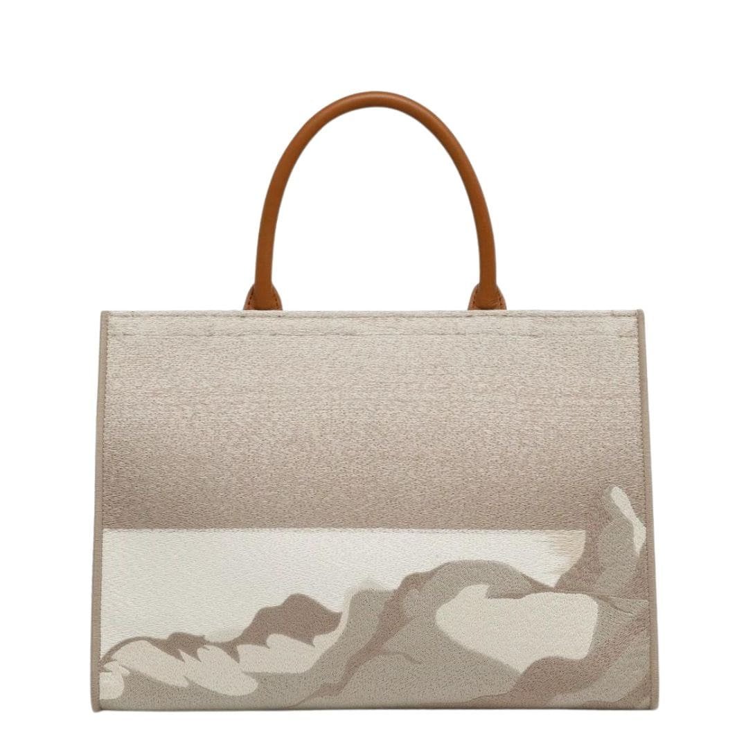 The exterior showcases a luxurious beige fabric that epitomizes understated chic. Its neutral hue lends versatility, effortlessly complementing various ensembles from casual to formal. The medium-sized silhouette strikes a balance between spaciousness and sleekness, making it ideal for both work and leisure activities.