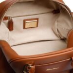 The sleek silhouette of the handbag exudes sophistication, with clean lines and minimalistic detailing that lend it an air of effortless chic. The structured shape adds a sense of refinement, ensuring that it maintains its polished appearance whether carried by the top handles or worn crossbody with the detachable strap.