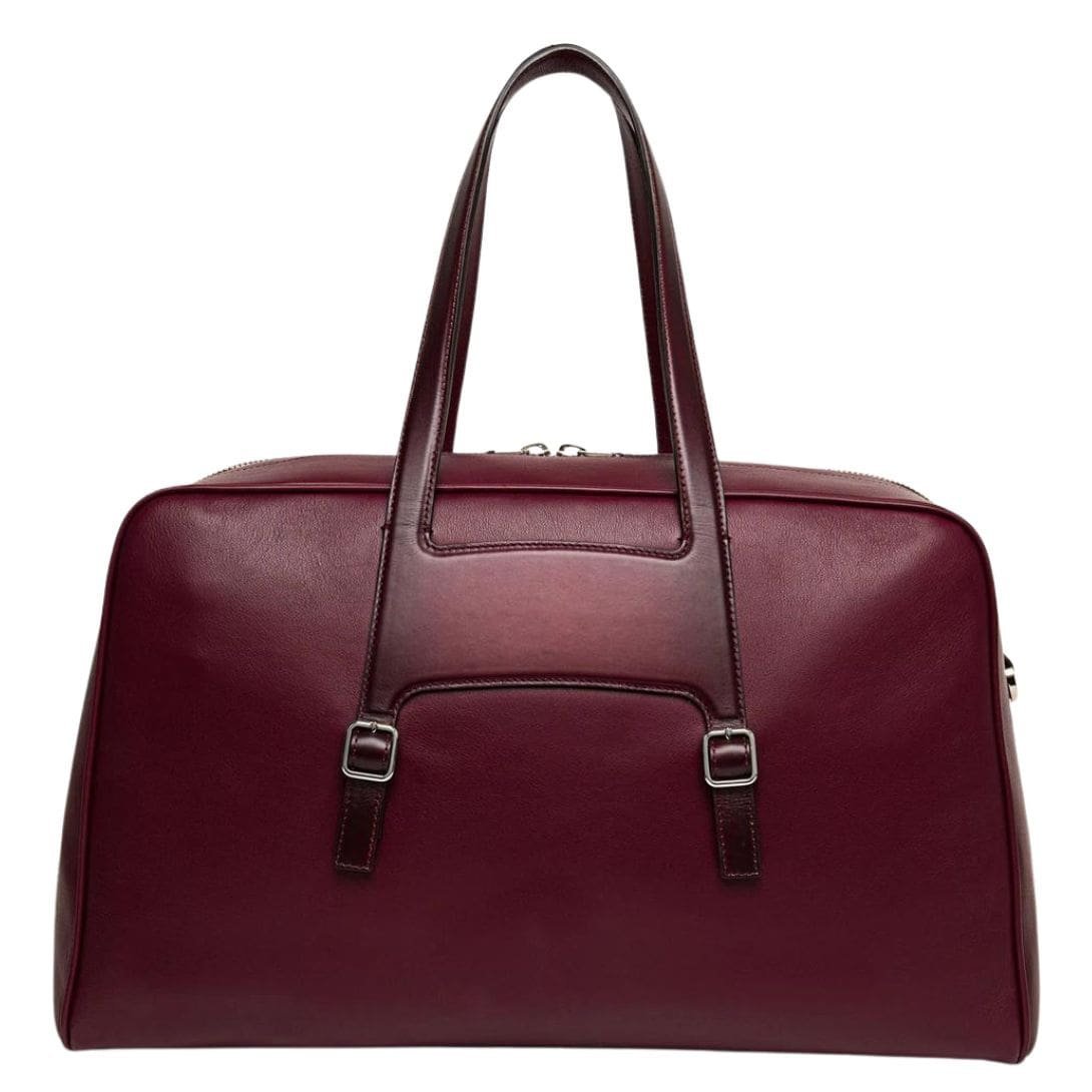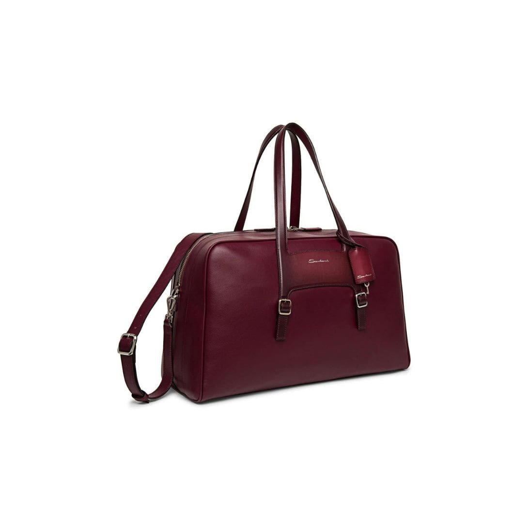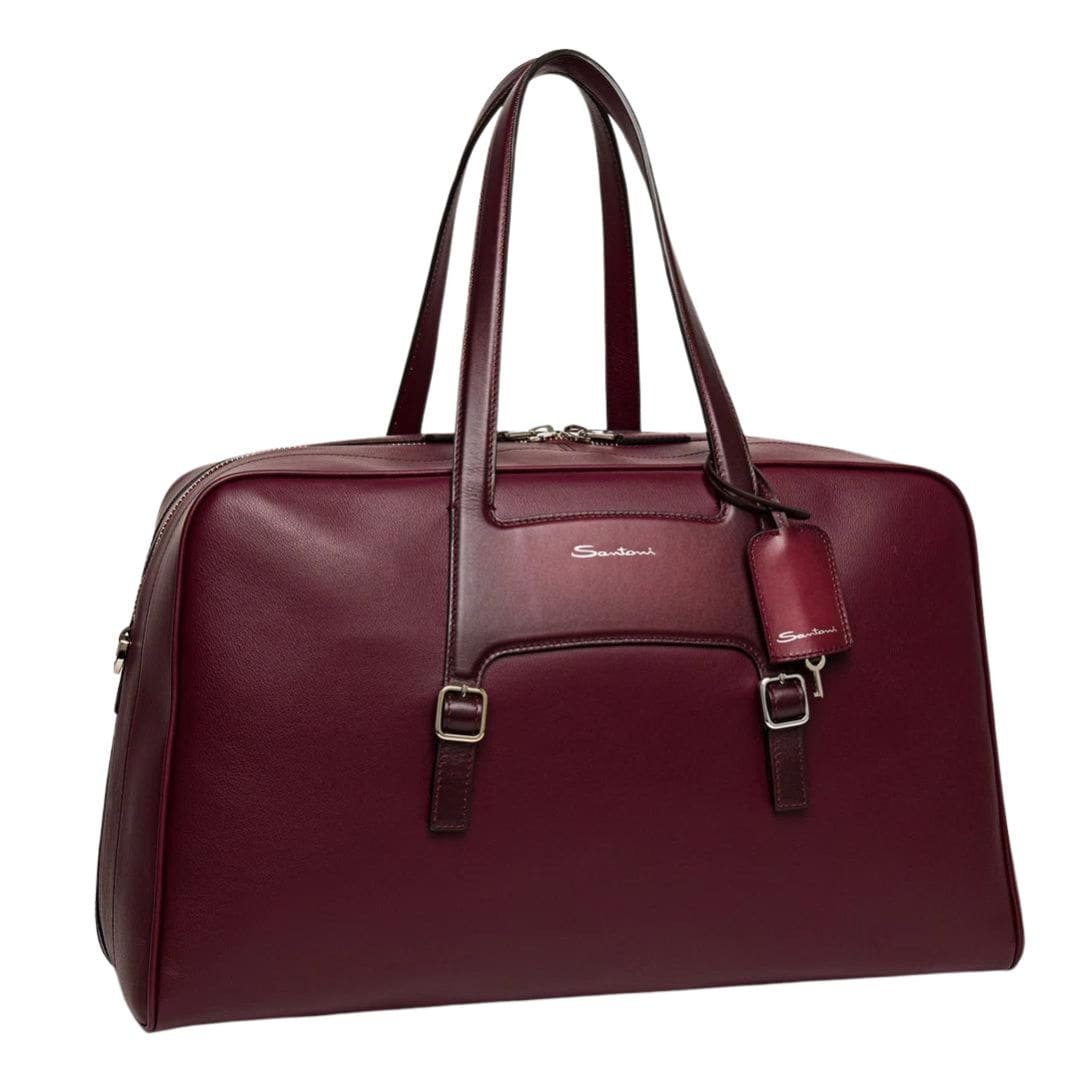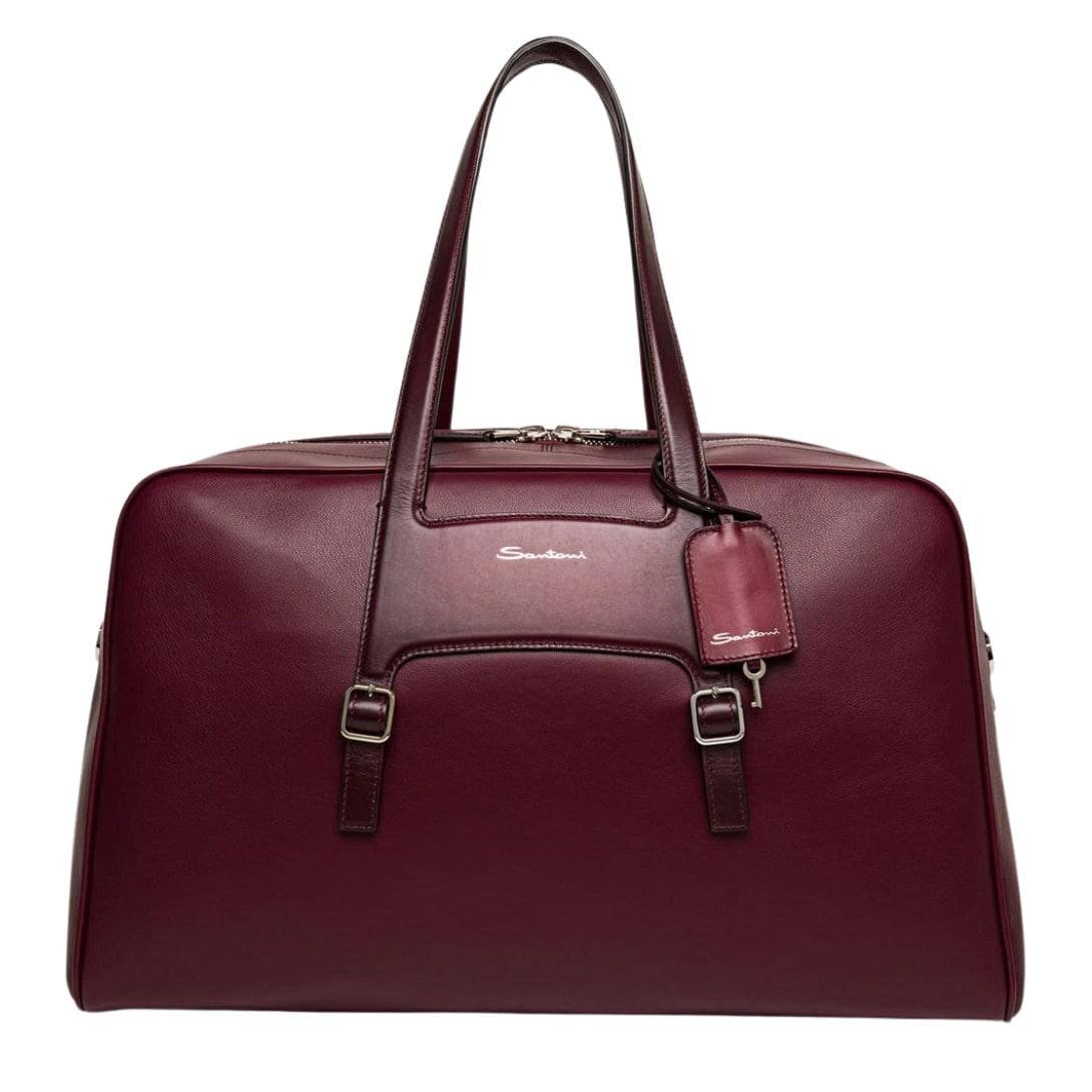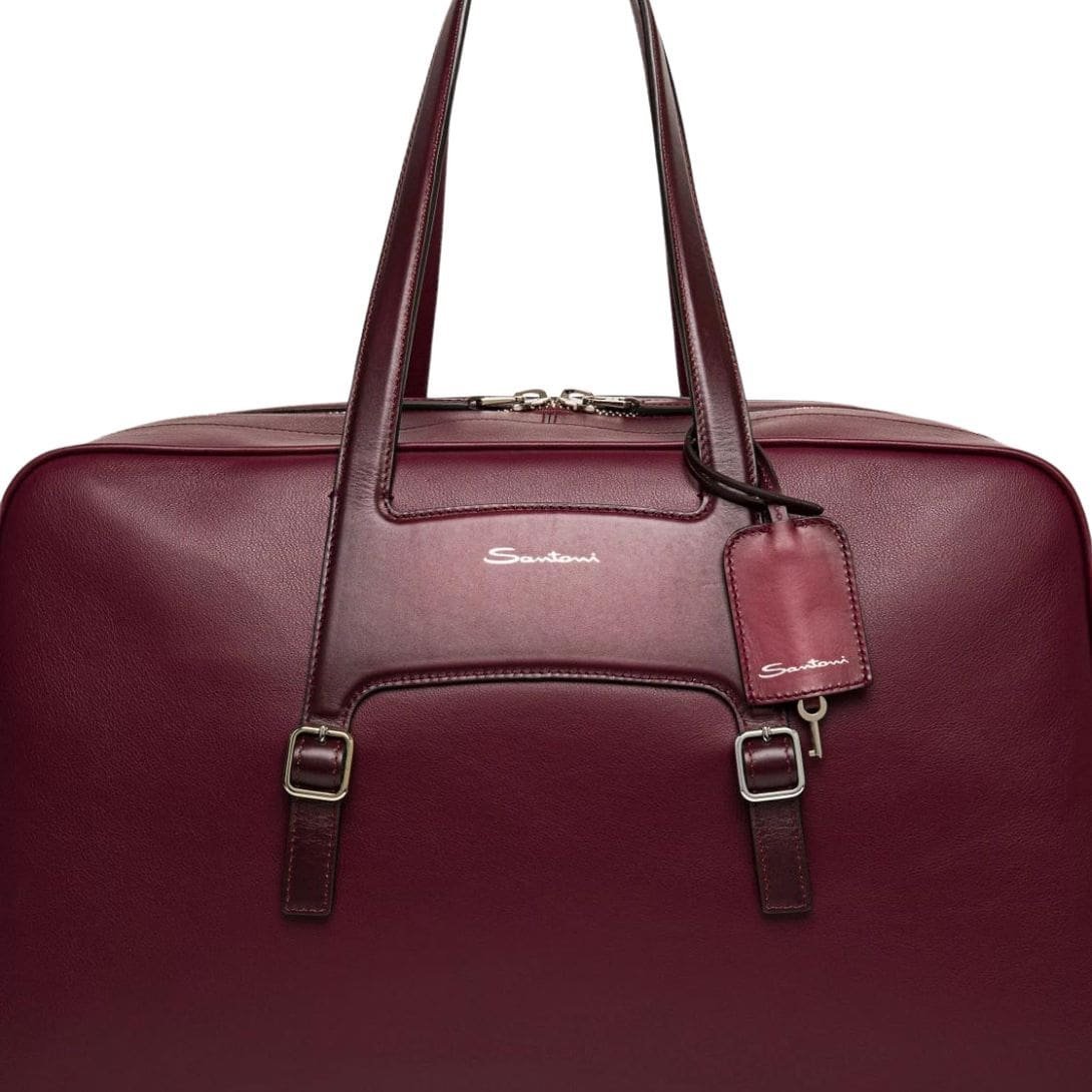 SANTONI BURGUNDY LEATHER WEEKEND BAG