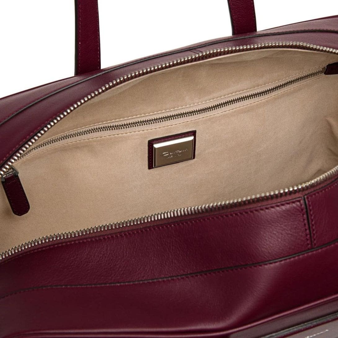 Functionality is paramount in the Santoni Burgundy Leather Weekend Bag. The spacious main compartment is thoughtfully designed to accommodate clothing, shoes, and other travel essentials, while interior pockets provide convenient storage for smaller items. A durable zipper closure ensures security during transit, while reinforced handles and a detachable shoulder strap offer versatility in carrying options.