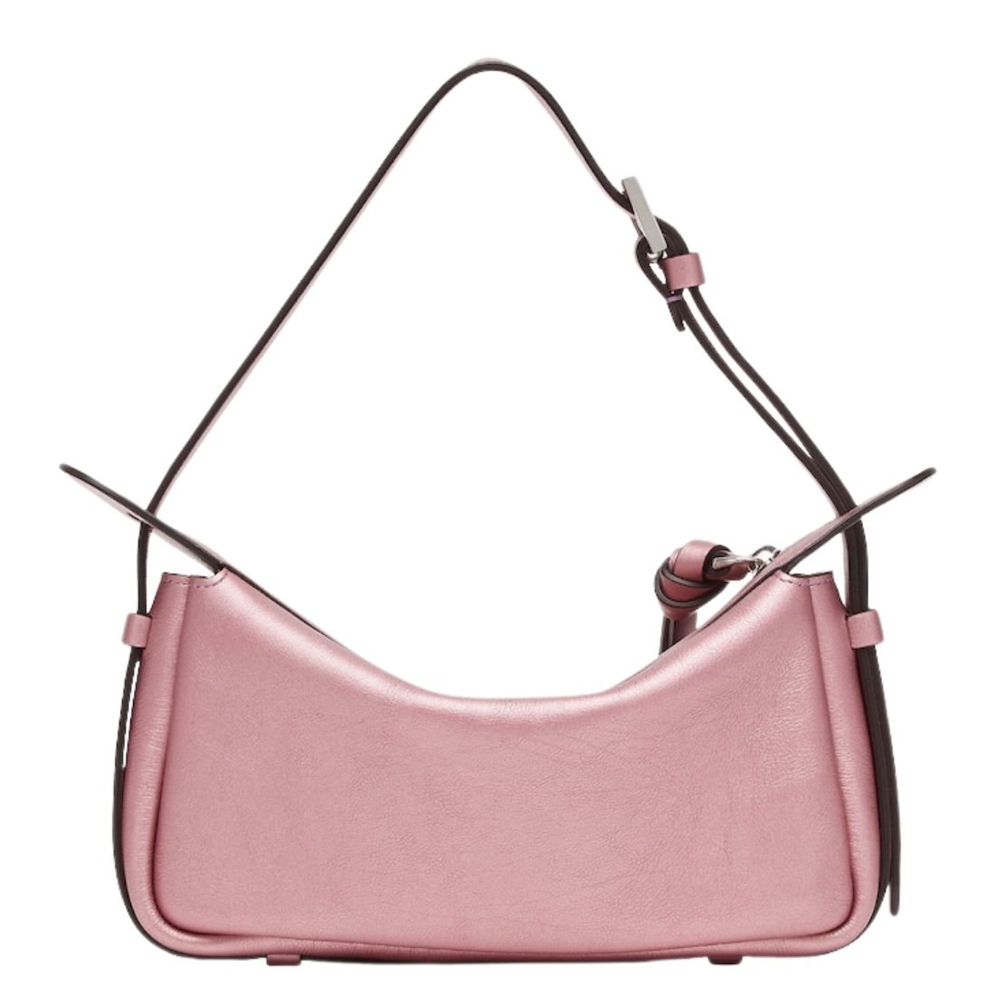 Crafted from low-sheen, pink metallic calfskin, the bag offers a soft glow with a subtle, sophisticated shine. The metallic finish enhances the bag’s modern yet classic look, ideal for both day and evening wear.