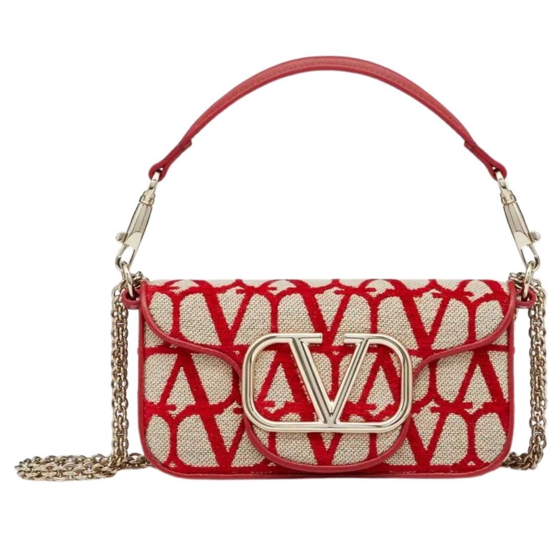 Small Valentino Garavani Locò Toile Iconographe Shoulder Bag: Toile Iconography with Metallic VLogo Signature Detail