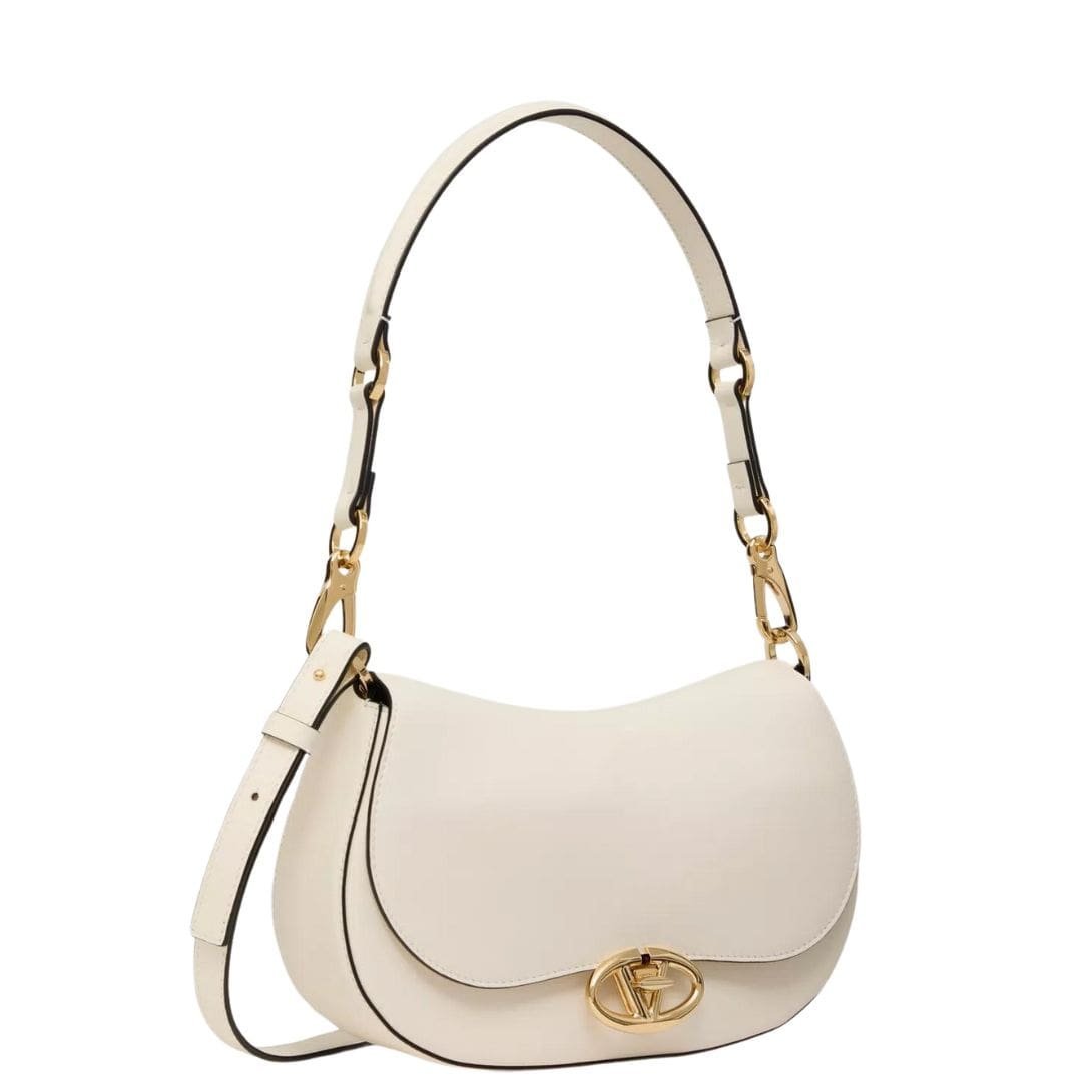 Introducing the small Valentino Garavani Ohval shoulder bag in nappa calfskin, crafted from luxurious nappa leather and featuring a VLogo Signature twist-lock closure. This chic bag offers versatile carrying options – it can be carried over the shoulder/crossbody, thanks to its handle and adjustable leather shoulder strap.