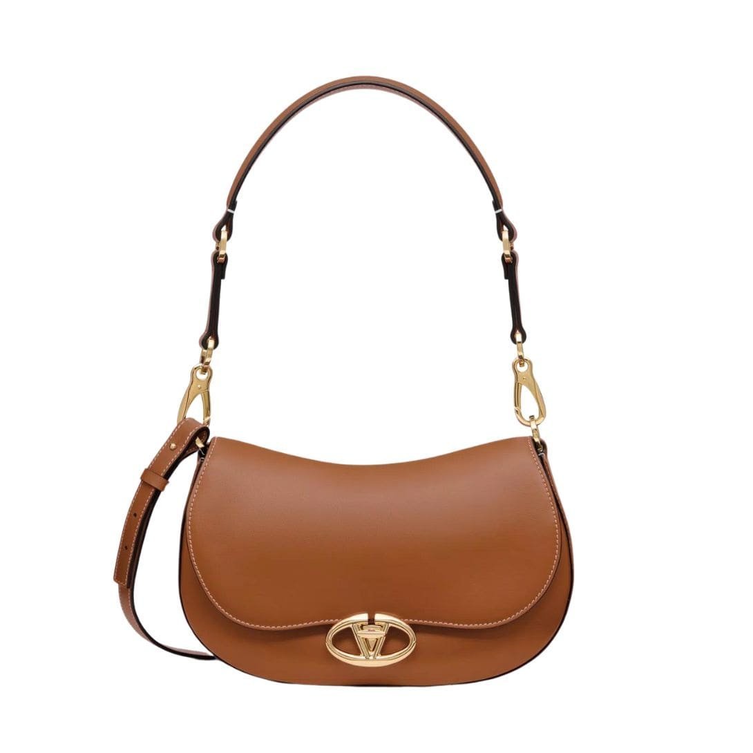 Introducing the small Valentino Garavani Ohval shoulder bag in nappa calfskin, crafted from luxurious nappa leather and featuring a VLogo Signature twist-lock closure. This chic bag offers versatile carrying options – it can be carried over the shoulder/crossbody, thanks to its handle and adjustable leather shoulder strap.