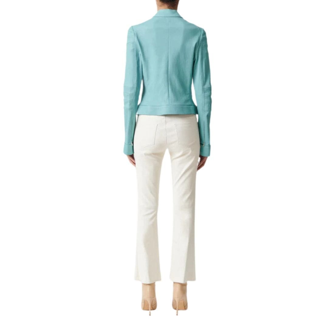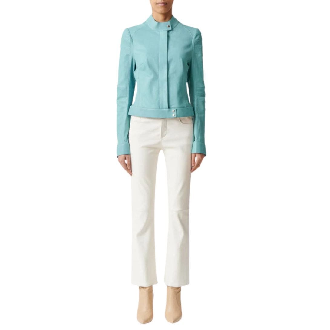 Introducing the STOULS Dean 22 Pants Flared Leather Jeans, a perfect blend of retro-inspired design and modern luxury. These pants are crafted from premium lambskin leather, offering a soft, supple feel and a sleek, polished look. Featuring a high-rise waist and a classic five-pocket design, the Dean 22 pants combine the iconic style of jeans with the sophistication of leather. The flared leg silhouette elongates the legs and adds a touch of vintage charm, making them a versatile choice for any occasion. Whether paired with a tailored blazer and heels for an upscale ensemble or with a casual top and boots for an effortlessly chic look, the STOULS Dean 22 Pants Flared Leather Jeans are a must-have for any fashion-forward wardrobe.