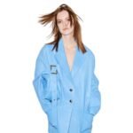 The Stouls Elina leather Bag offers versatility and style, designed to be carried on the shoulder or across the body with an adjustable handle for a customized fit. It features a secure zipper closure and is crafted from a blend of 100% lamb leather, 97% cotton, 2.4% lyocell, and 0.6% elastane. The interior, lined with 100% recycled polyester, includes one zipped pocket, one bellows pocket, and one patch pocket for organized storage. Measuring L 35 x H 21 x D 14 cm, the bag’s buckle and eyelets are made of polished brass, which will develop a natural patina over time.