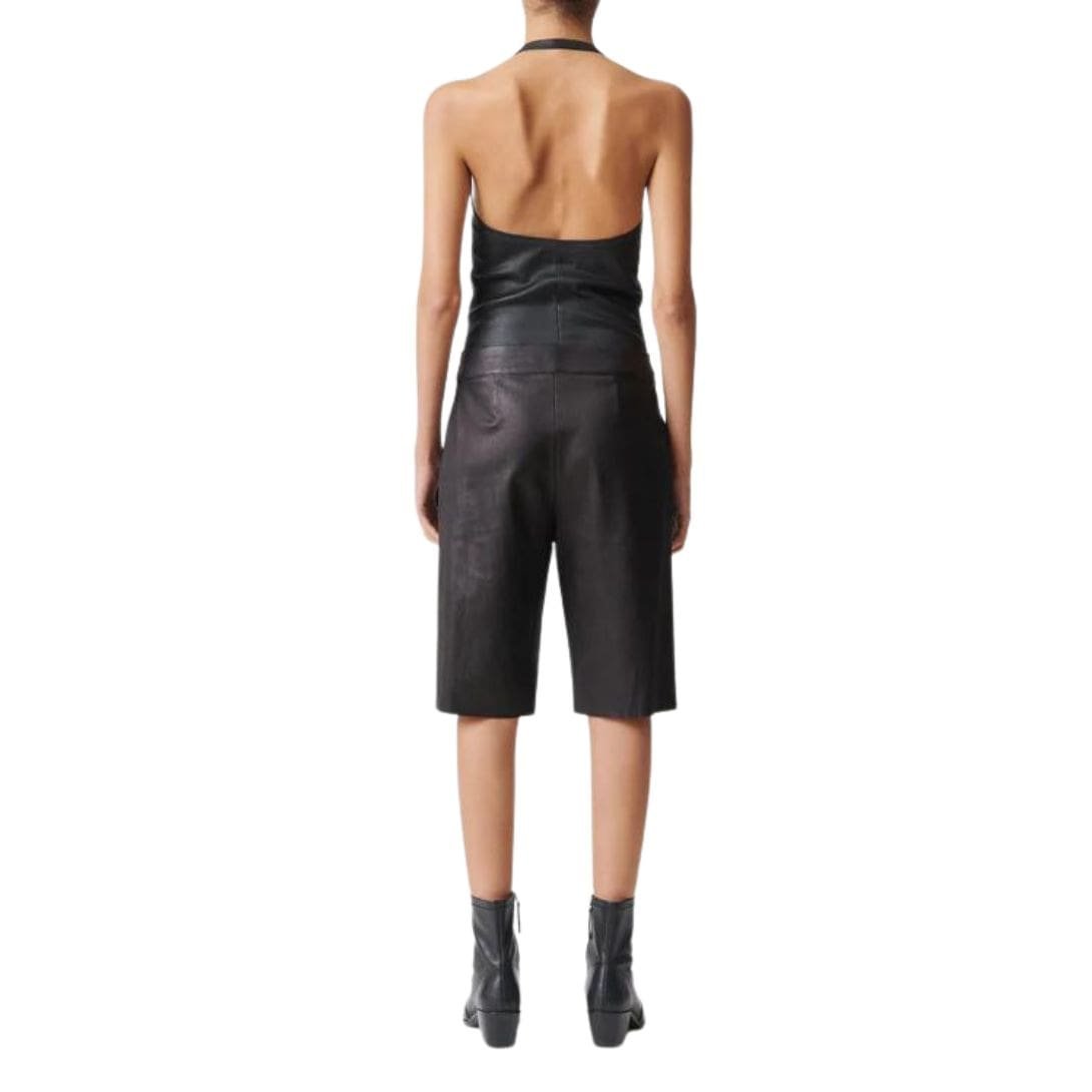 STOULS GASTONE DENIM-STYLE LEATHER BERMUDA SHORTS