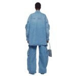 The Attico Fern Washed Blue Short Coat features multi-pockets and an embroidered logo. Made in Italy, this coat combines casual style with practical design.
