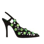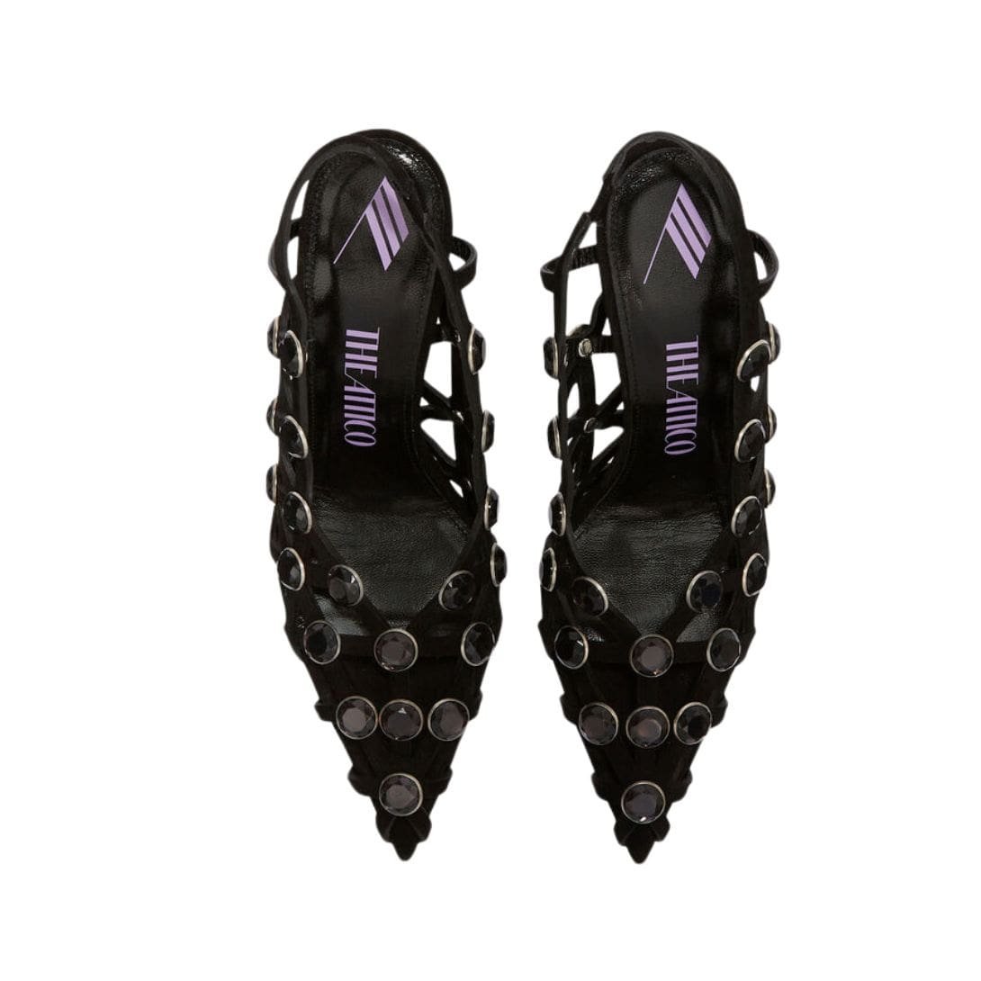 The Attico ”Grid” Black Slingback in black suede with matching crystal embellishment, heel height 105mm. Made in Italy.