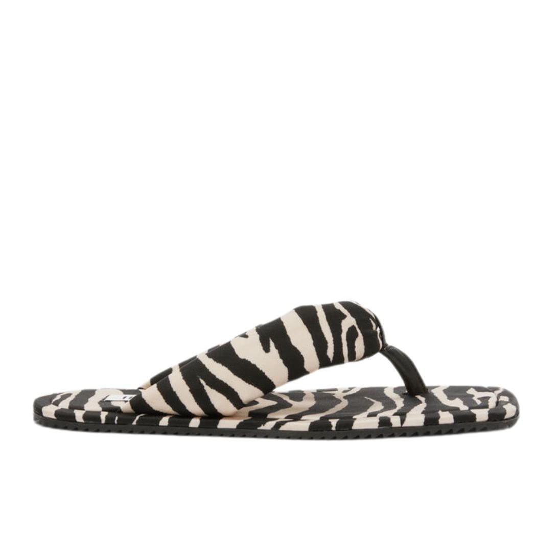 The Attico “indie” Red and Milk Flat Thong sandals are adorned with a bold zebra print in red and milk. Crafted in Italy.