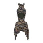 The Attico “Magnolia” Military and Light Brown Mini Dress in military and light brown camouflage printed jersey with logo metal hook.