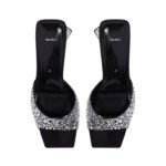 The Attico ”Mini Devon” Black and Silver Mule in suede with mirror application in black and silver, pyramid heel, height 85mm. Made in Italy.