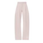 The attico pale pink long pants in pale pink tailoring stretch feature a low rise, wide leg, and logo embroidery. Made in Italy.