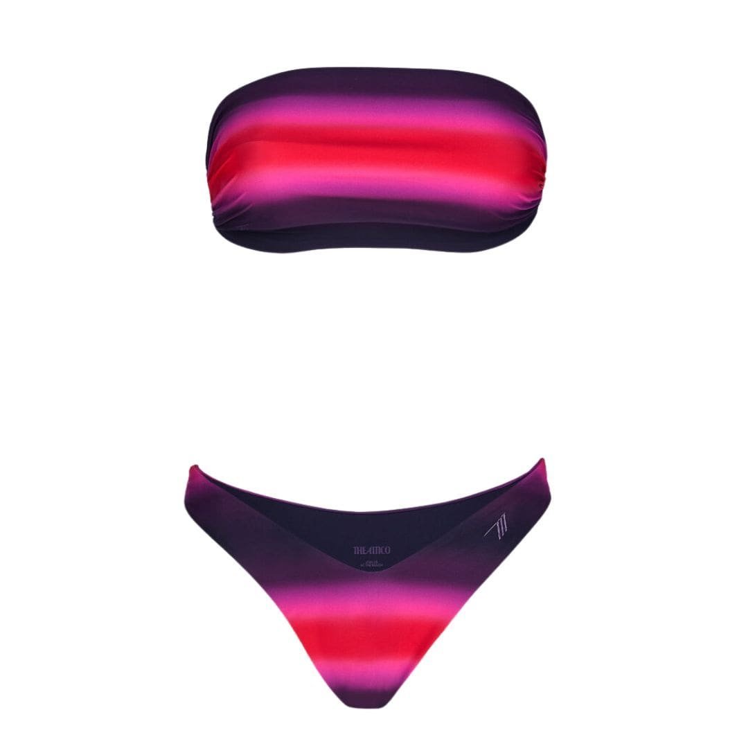 The Attico Red, Black and Fuchsia Bikini features a shaded printed draped bandeau bra with adjustable strings and logo metal ends. Crafted in Italy from high-quality materials.
