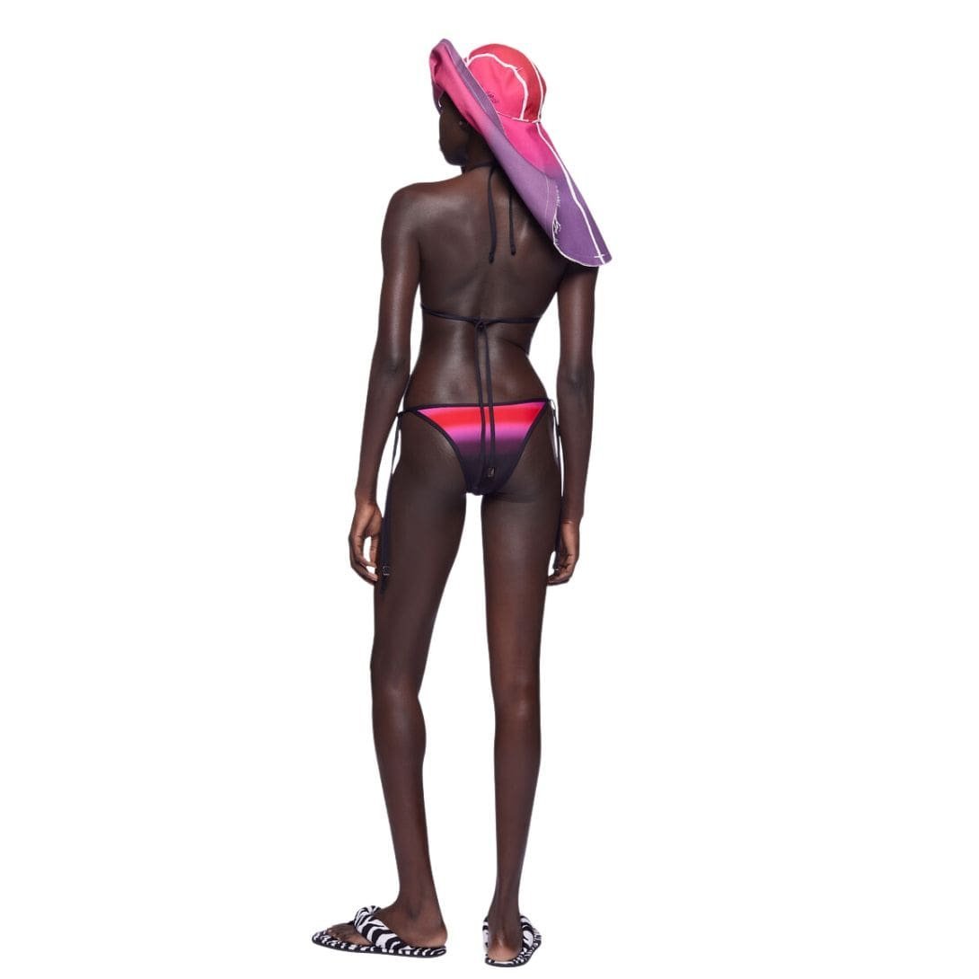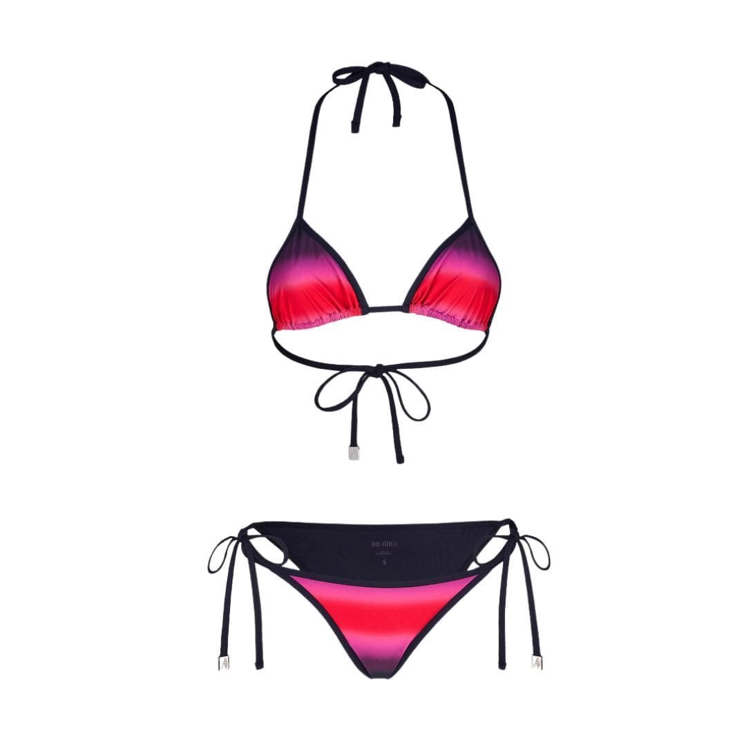 The Attico Red, Black and Fuchsia Bikini features a triangle bra with adjustable strings and logo metal ends. Crafted in Italy from high-quality materials.