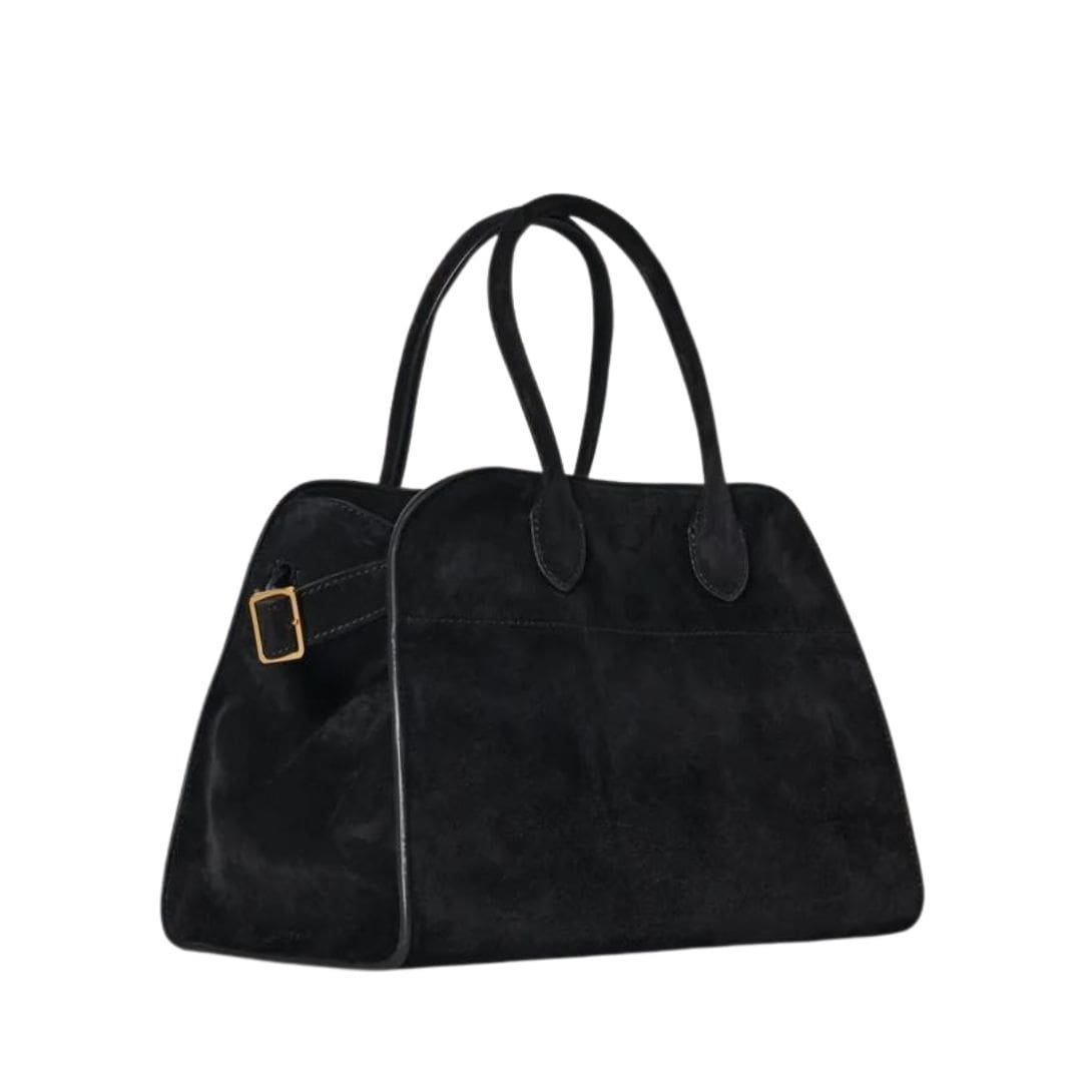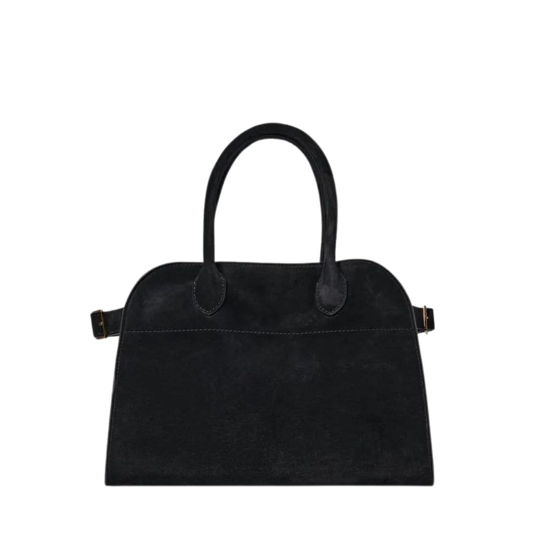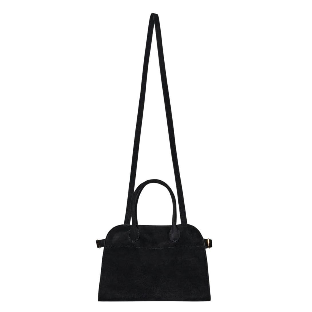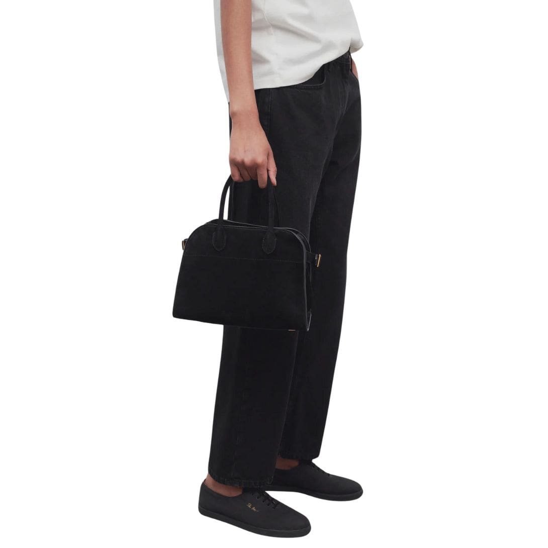 The Soft Margaux 10 Bag is distinguished by its thoughtful details and high-quality craftsmanship. The suede exterior adds a tactile element to the bag, offering a rich, velvety texture that enhances its luxurious appeal. The bag’s muted color palette aligns with The Row’s aesthetic of understated elegance, allowing it to complement a wide range of outfits.