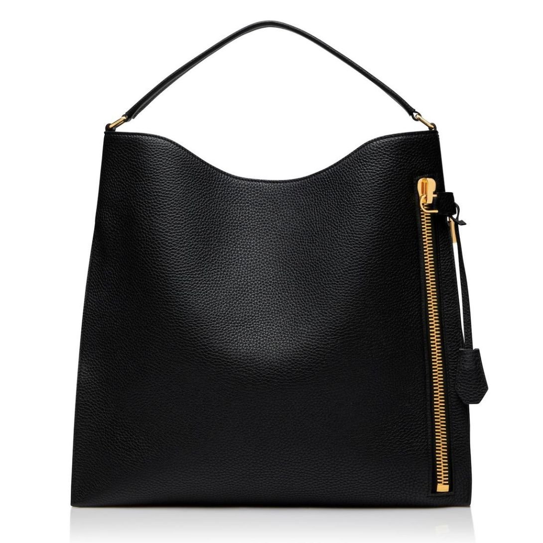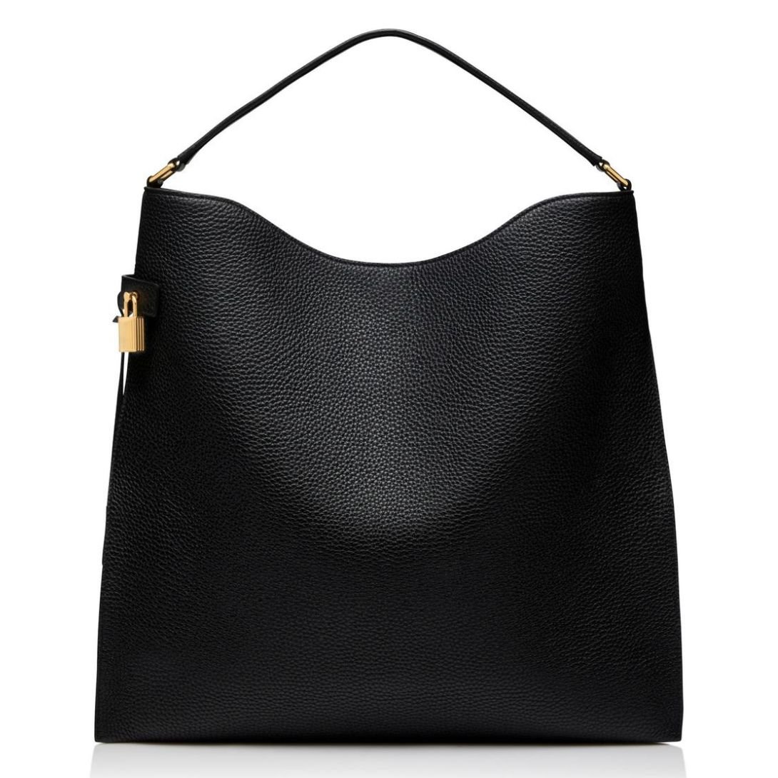 TOM FORD GRAIN LEATHER ALIX LARGE HOBO BLACK