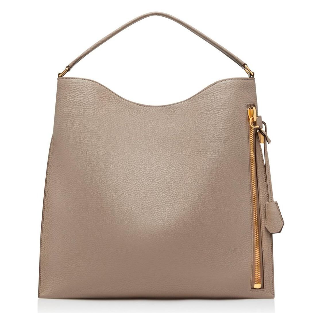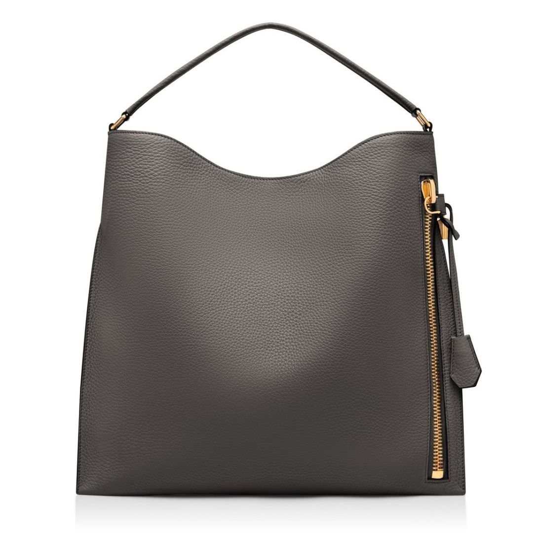 TOM FORD GRAIN LEATHER ALIX LARGE HOBO GRAPHITE