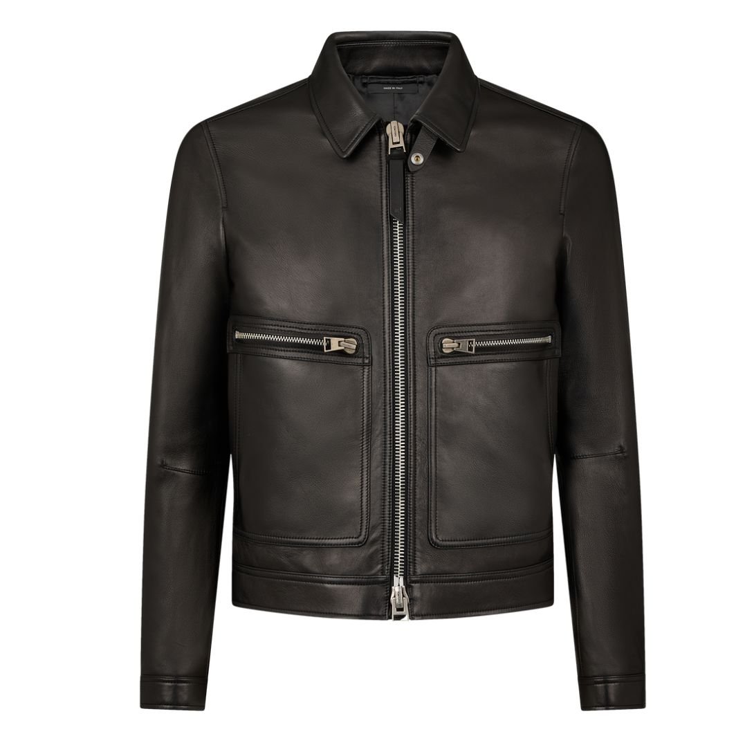 TOM FORD NAPPA GRAIN LEATHER COLLAR BLOUSON