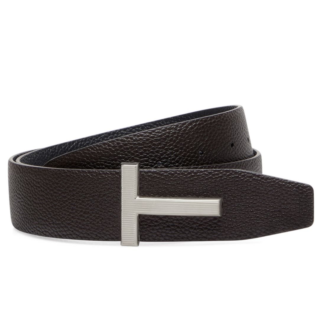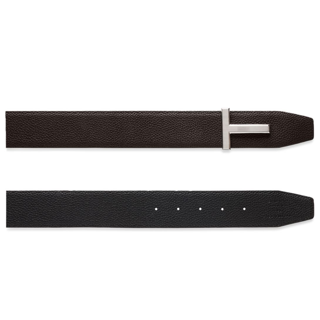 TOM FORD SMALL GRAIN LEATHER REVERSIBLE FRAMED T BELT