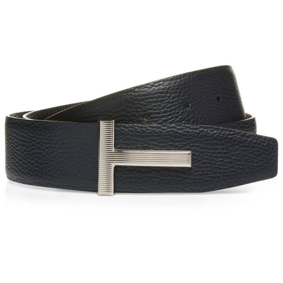 TOM FORD GRAIN LEATHER RIDGE BUCKLE T BELT