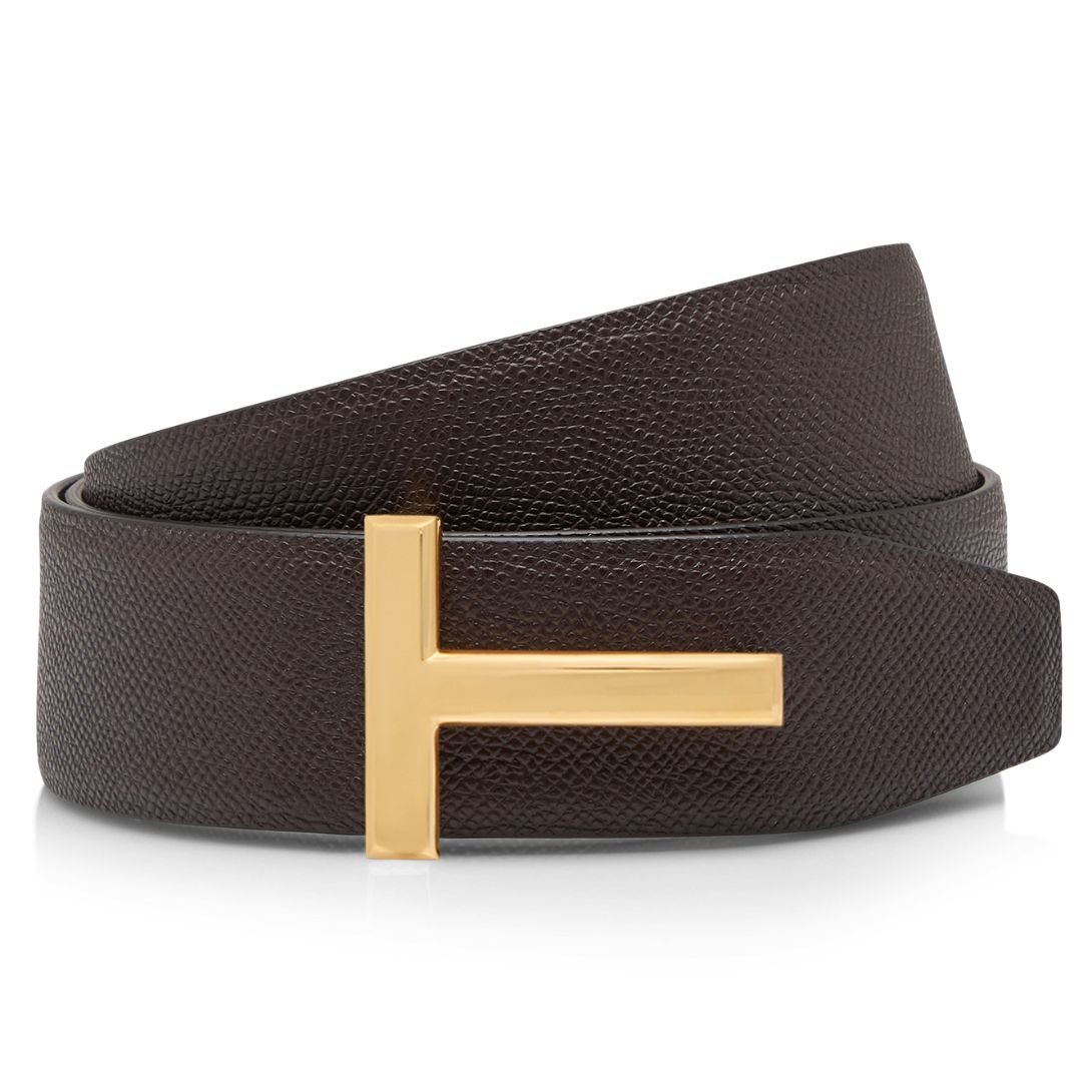TOM FORD GRAIN LEATHER RIDGE BUCKLE T BELT