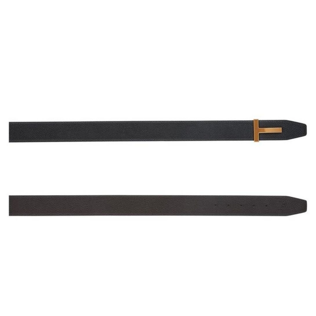 TOM FORD GRAIN LEATHER RIDGE T BELT BROWN