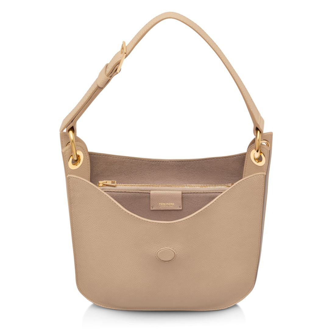 TOM FORD GRAIN LEATHER ALIX LARGE HOBO SILK TAUPE