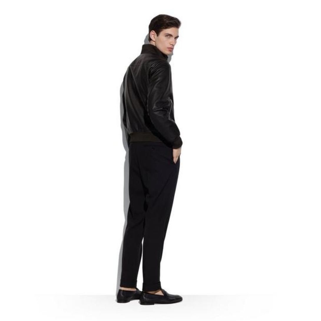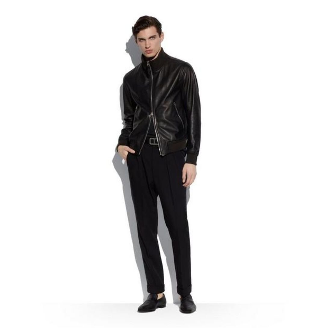 Blending sporty aesthetics with luxurious craftsmanship, the Tom Ford Fully Lined Track Bomber is a sophisticated wardrobe essential. Crafted from 100% premium leather, this jacket offers a structured yet comfortable fit, making it a standout piece for modern, effortless style.