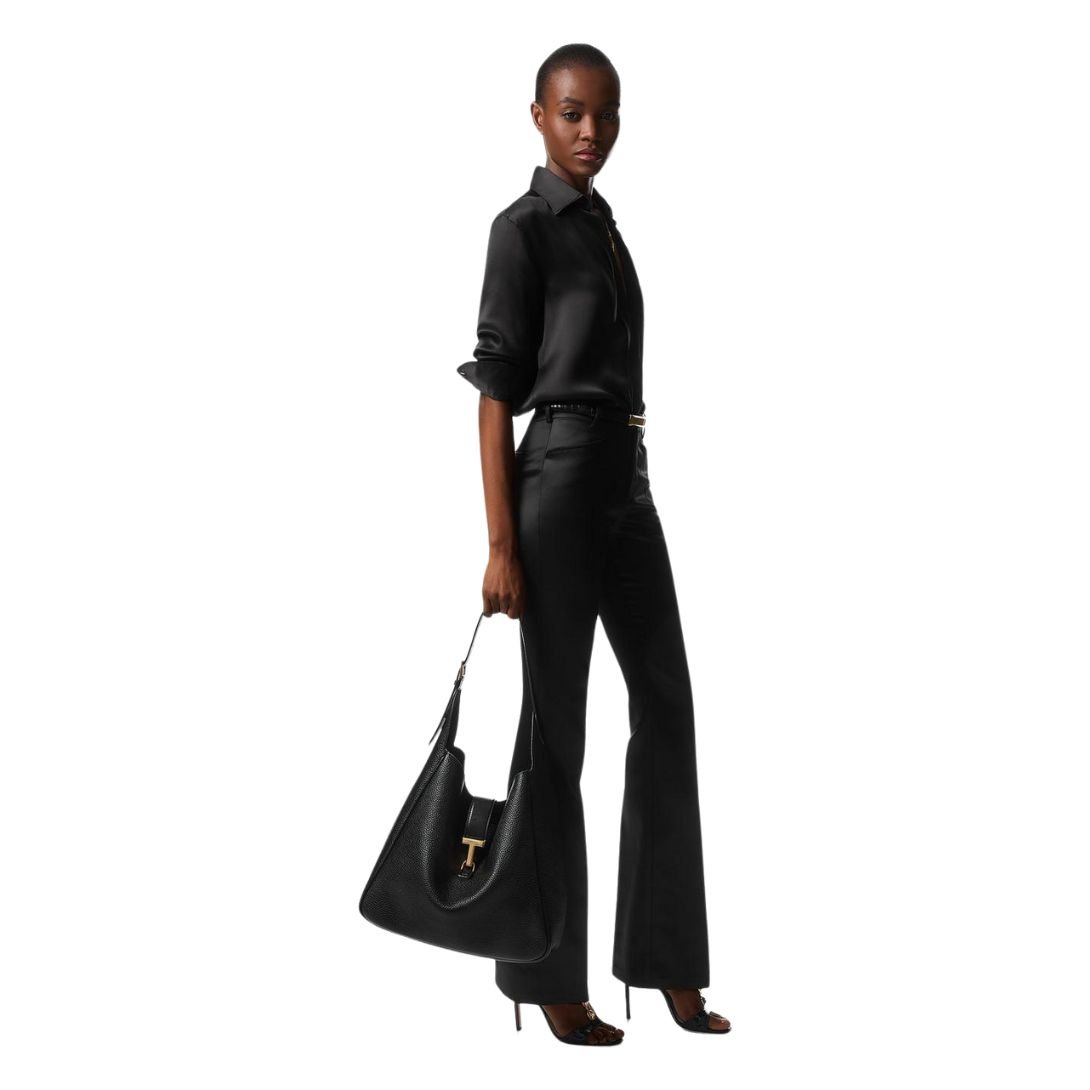 TOM FORD LEATHER MONARCH LARGE HOBO BLACK