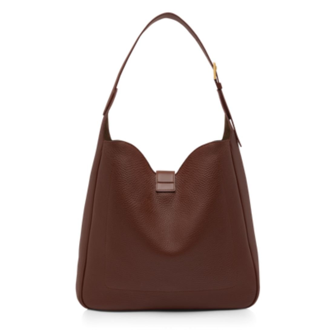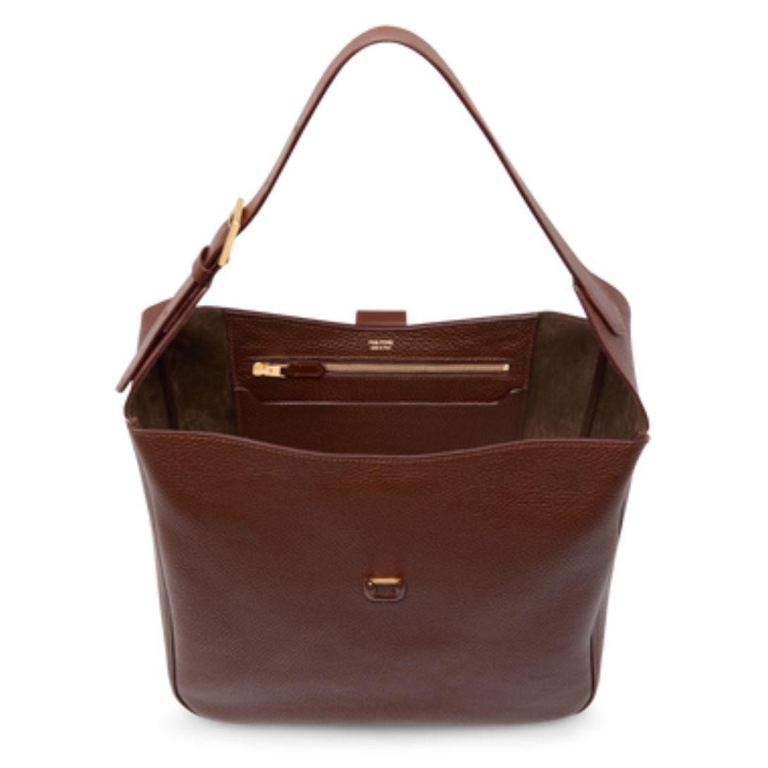 TOM FORD LEATHER MONARCH LARGE HOBO SADDLE BROWN