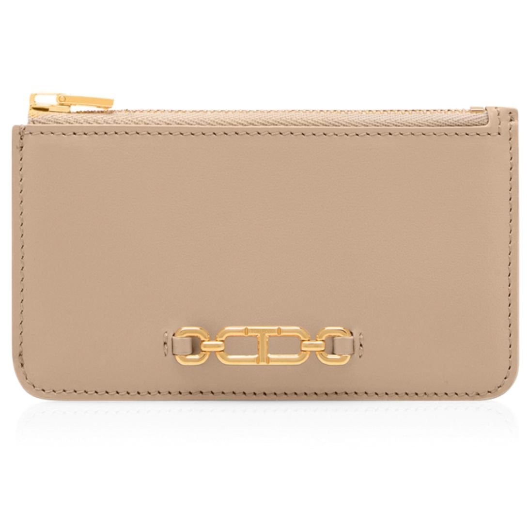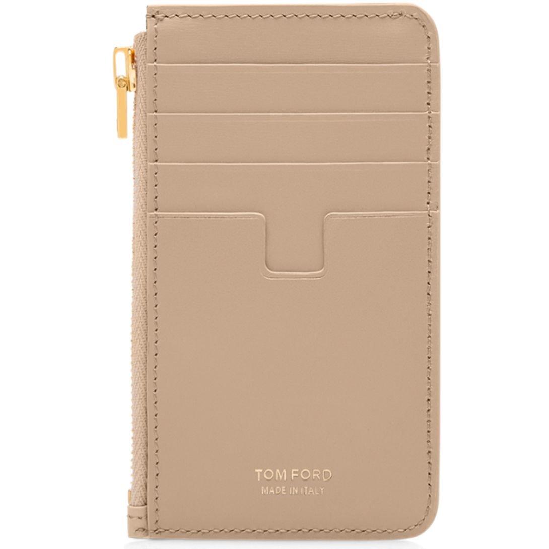 TOM FORD PALMELLATO EFFECT LEATHER ZIPPED CARD HOLDER LIGHT BEIGE