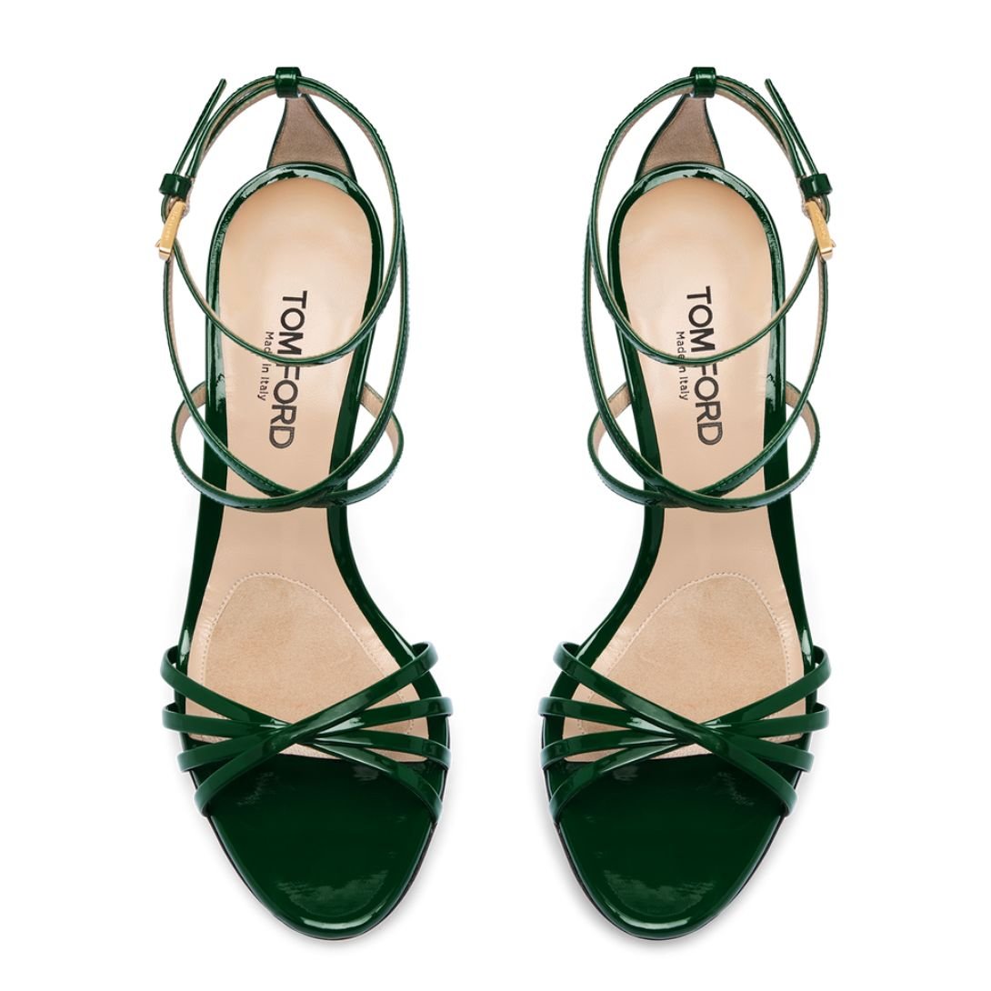 TOM FORD PATENT LEATHER IDA SANDAL EMERALD GREEN