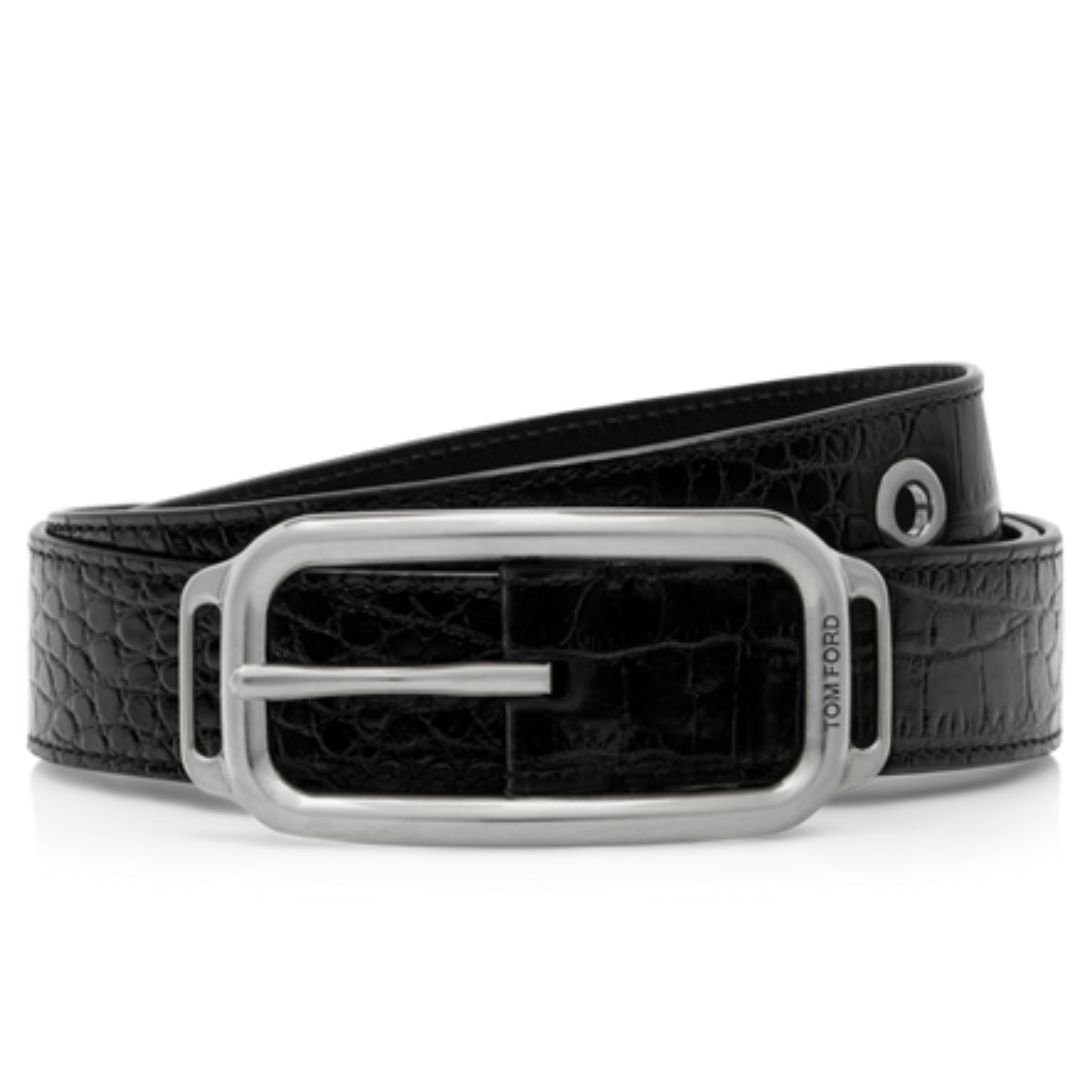 TOM FORD PRINTED CROC STADIUM BUCKLE BELT
