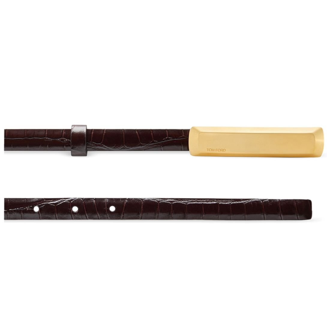 TOM FORD STAMPED CROCODILE LEATHER 15 MM BAR BELT ESPRESSO