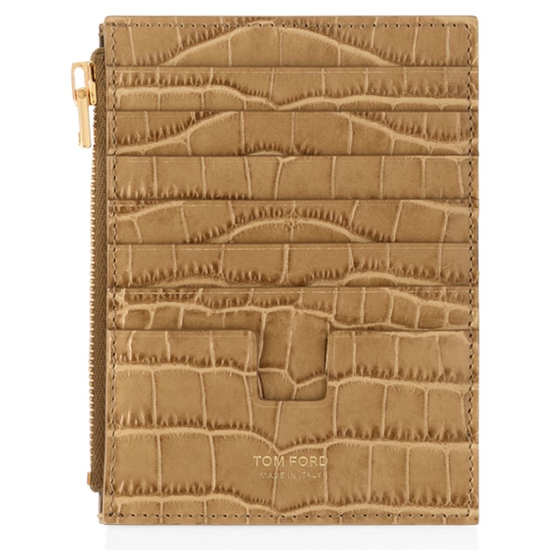 TOM FORD STAMPED CROCODILE LEATHER ZIPPED CARD HOLDER SAFARI BEIGE