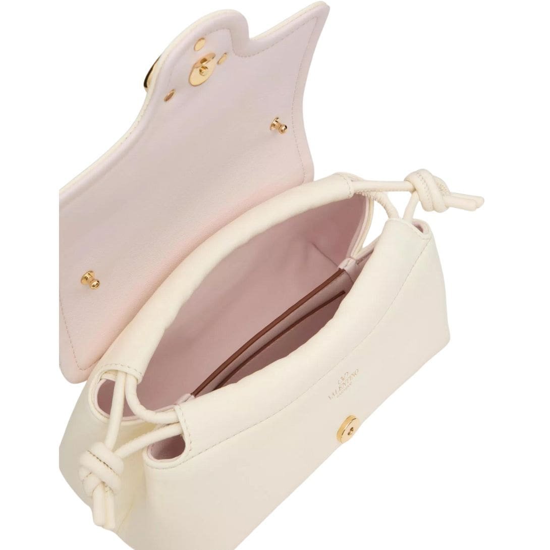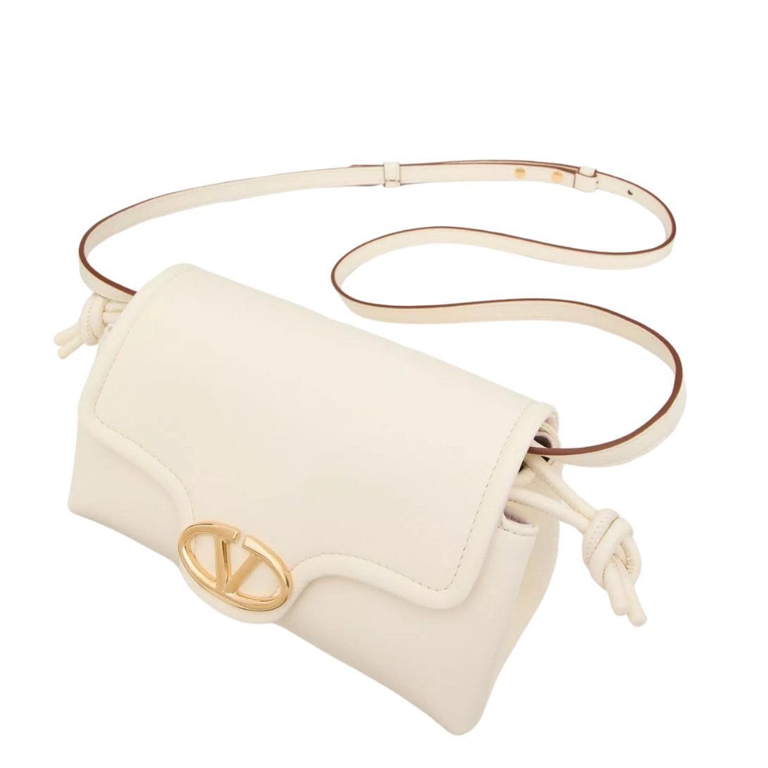 Introducing the Valentino Garavani VLogo 1960 nappa leather mini bag featuring a metallic VLogo Signature element. This versatile bag offers multiple carrying options – it can be worn on the shoulder/cross-body or carried by hand, thanks to its removable shoulder strap.