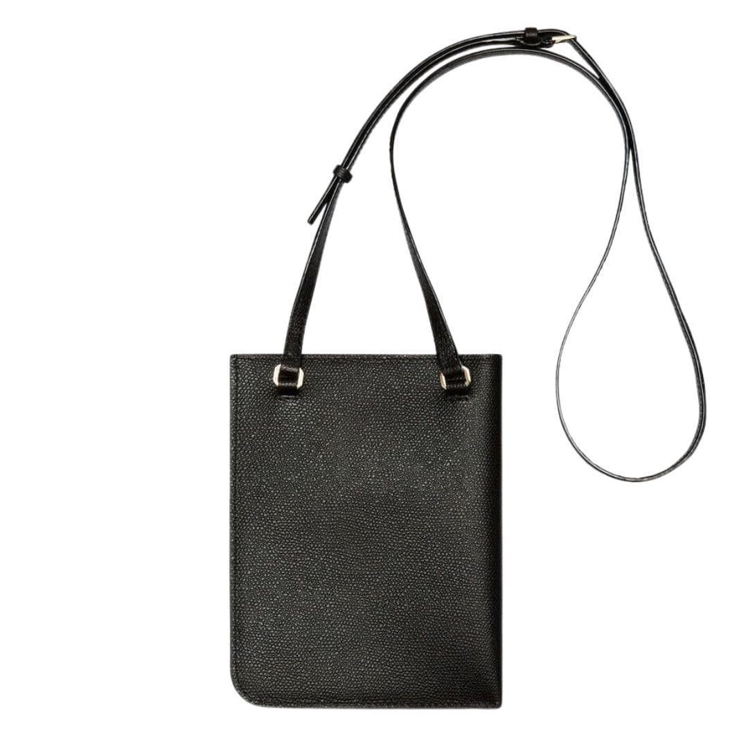 The Valextra Crossbody Soft Document Holder is your go-to for keeping essentials close at hand, whether you’re traveling or navigating daily life. Passports, papers, wallets, and cards all find a home in this understated yet practical design, featuring an accessible central compartment and two card slots. Our signature black lacquered Costa edging transforms this discreet accessory into a statement piece, while the Inchiostro detailing celebrates our artisanal craftsmanship. Crafted from black Millepunte calf leather, it adds a touch of everyday sophistication to your ensemble.